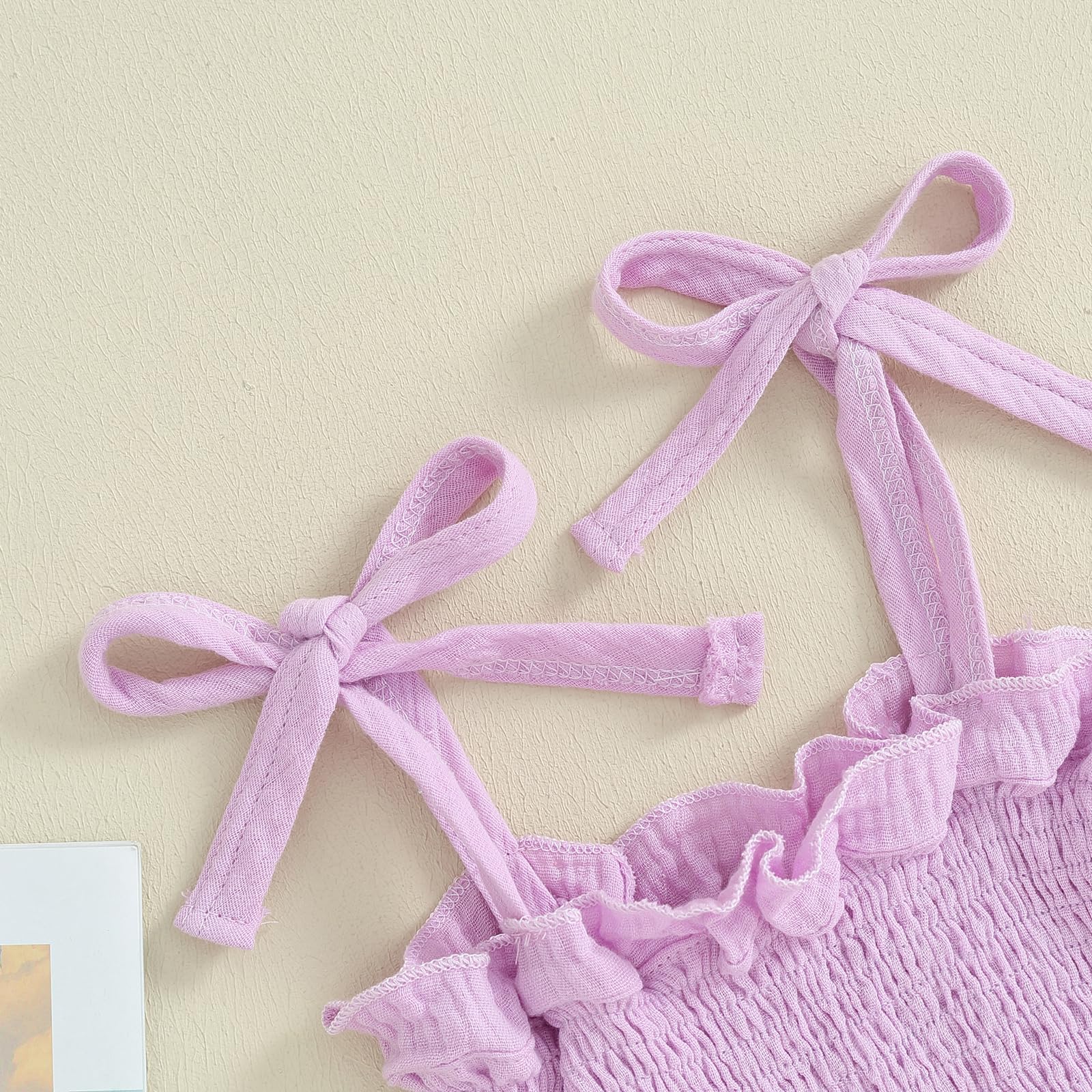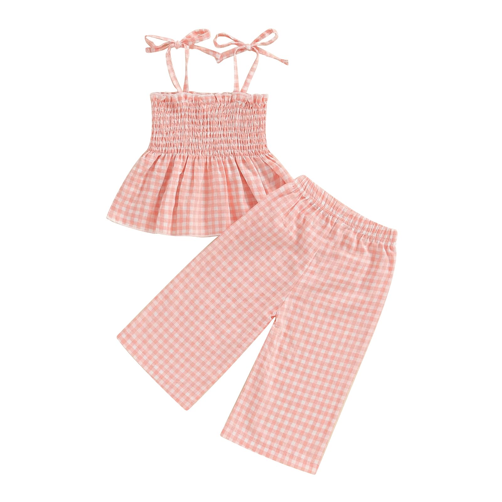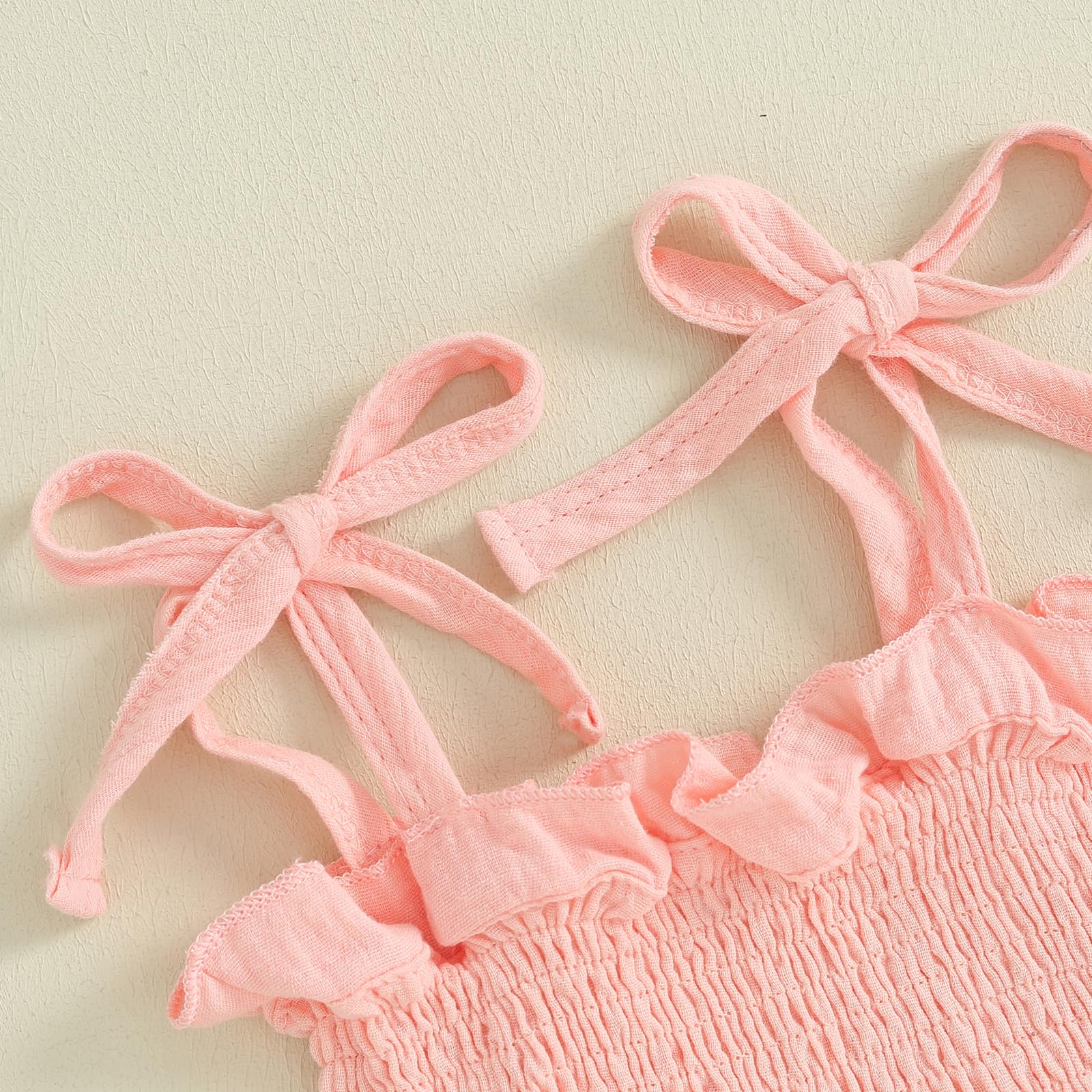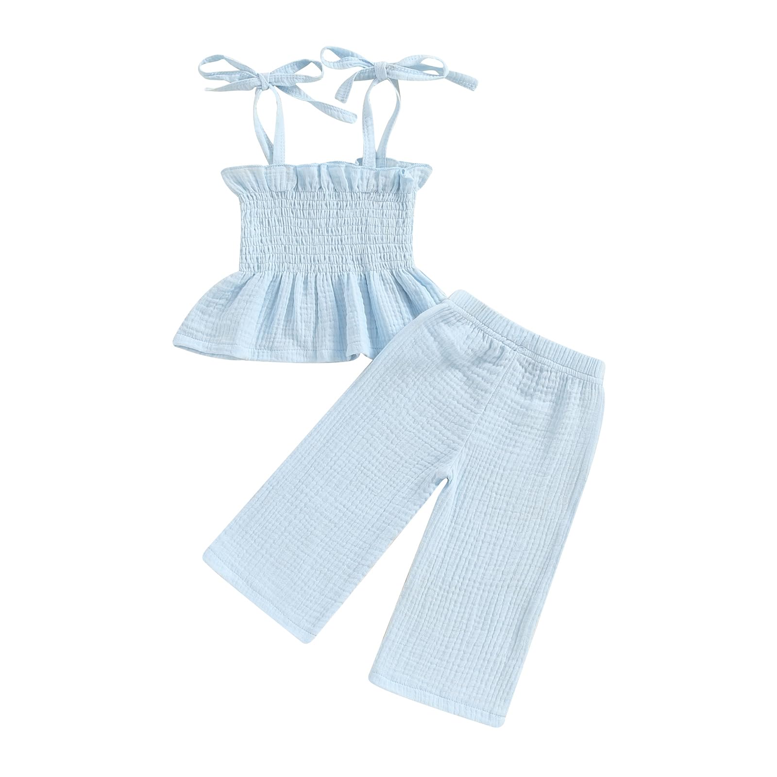 VISGOGO Toddler Baby Girl Outfits Sleeveless Smocked Strap Camisole Linen Pan...