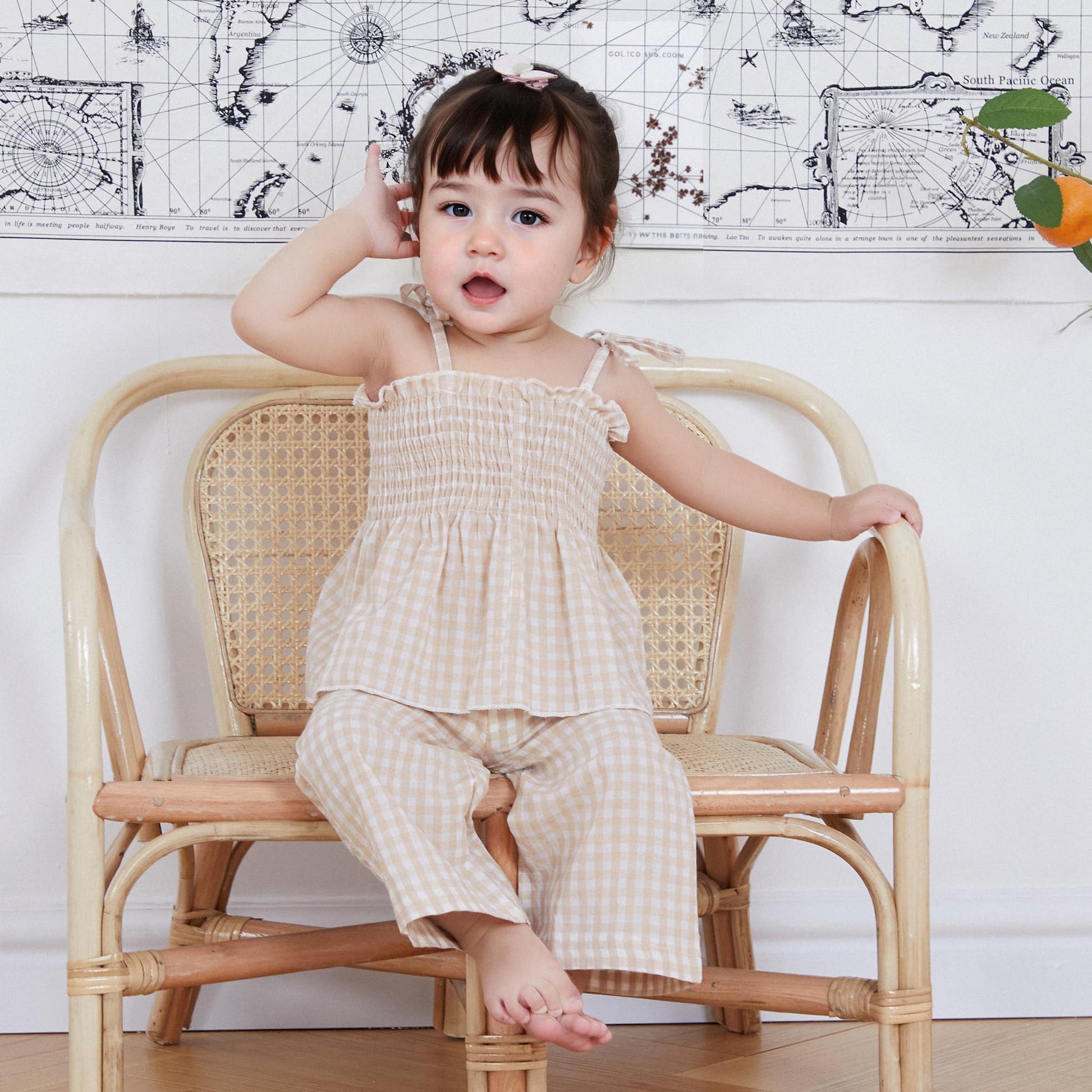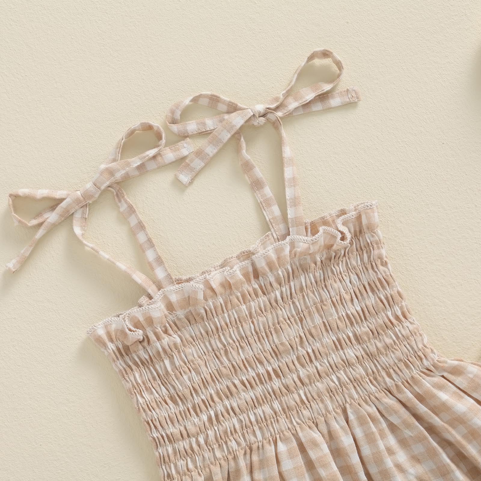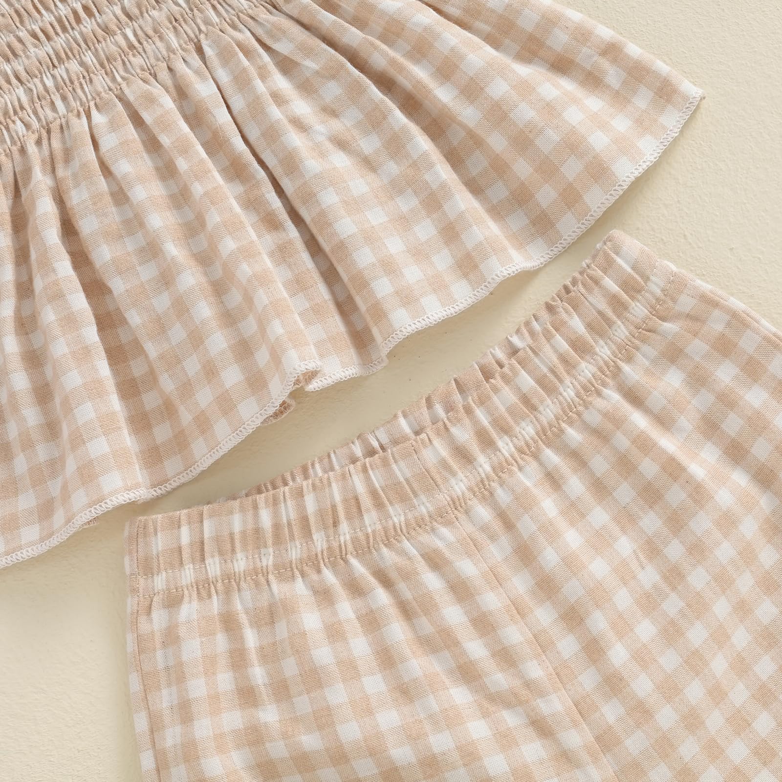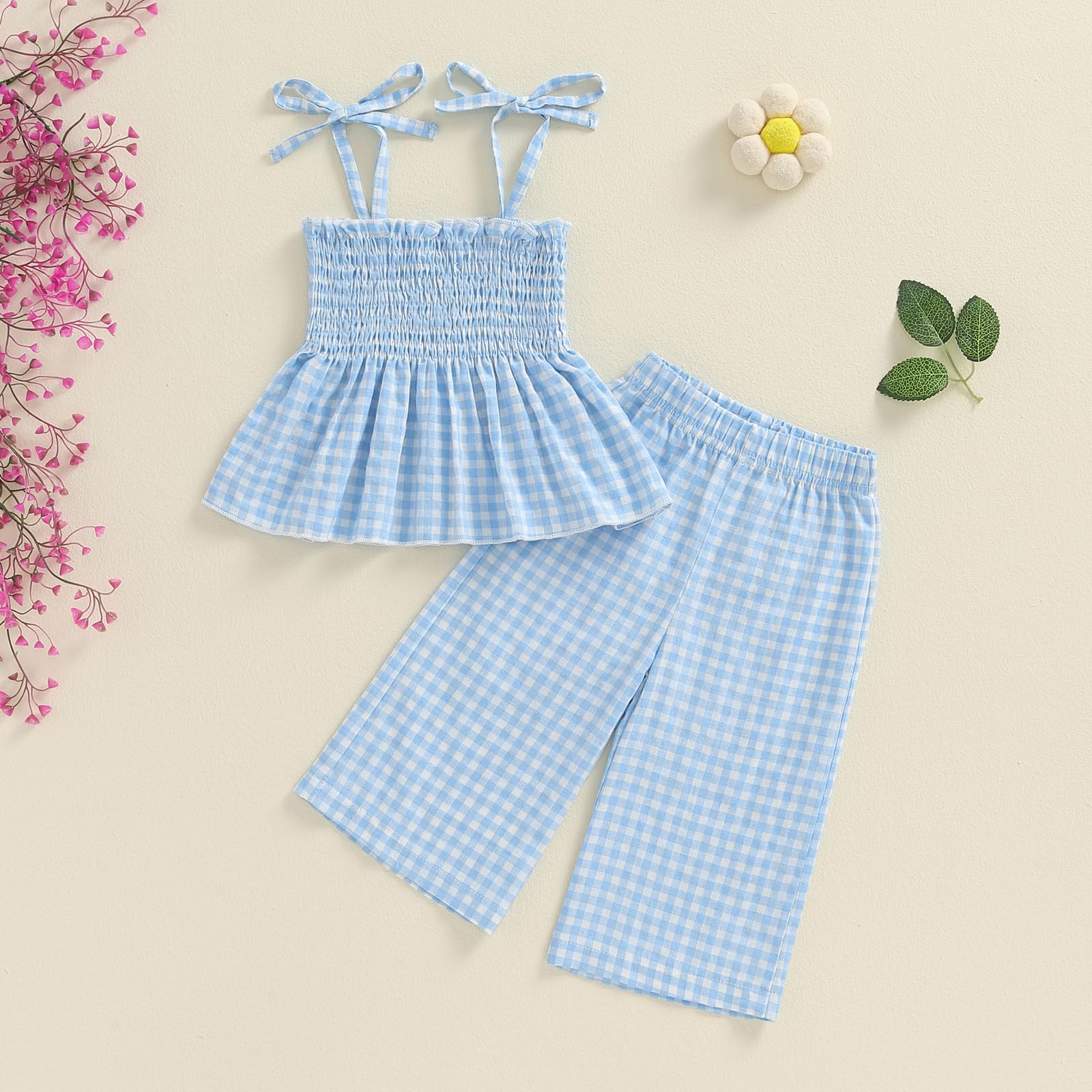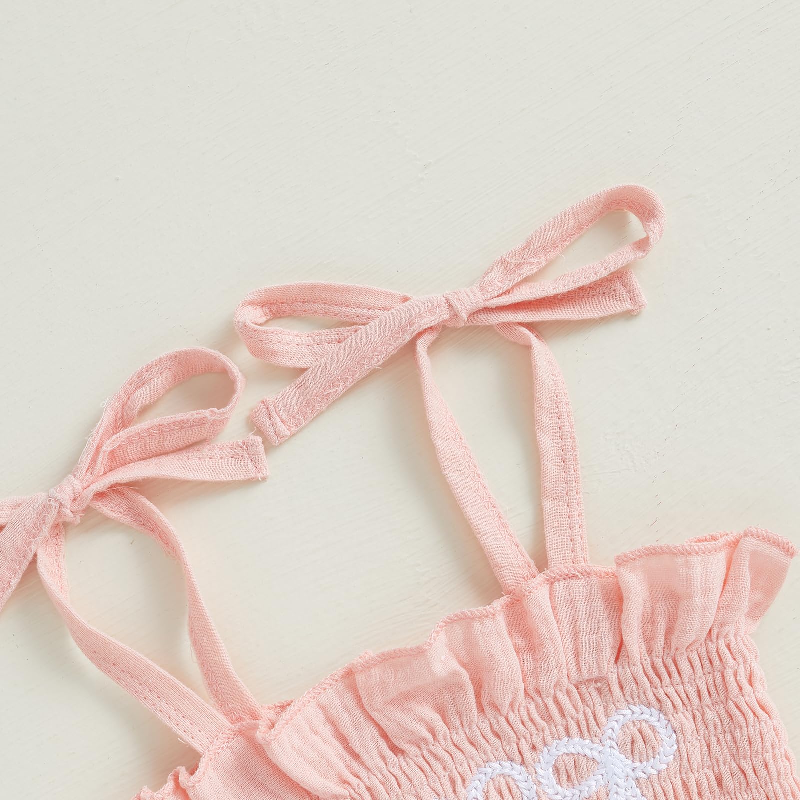 VISGOGO Toddler Baby Girl Outfits Sleeveless Smocked Strap Camisole Linen Pan...