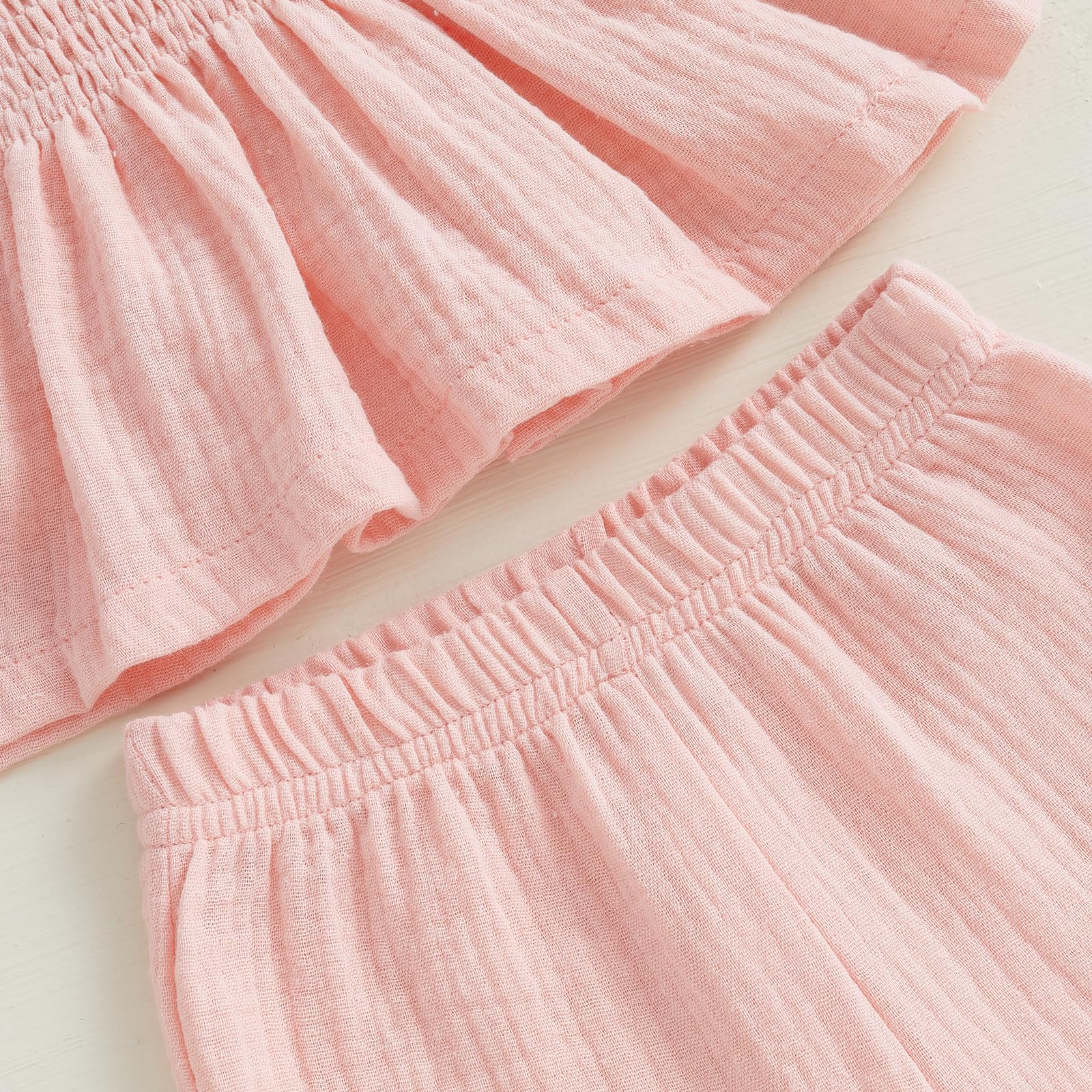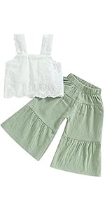 • CASUAL DESIGN--- Solid color, baby girl camisole top with sleeveless, bandage straps and ruffle hem design. Baby pants are designed with elastic waist for easy fit, your little girl will love such a cute outfit!