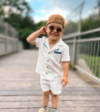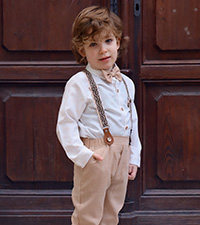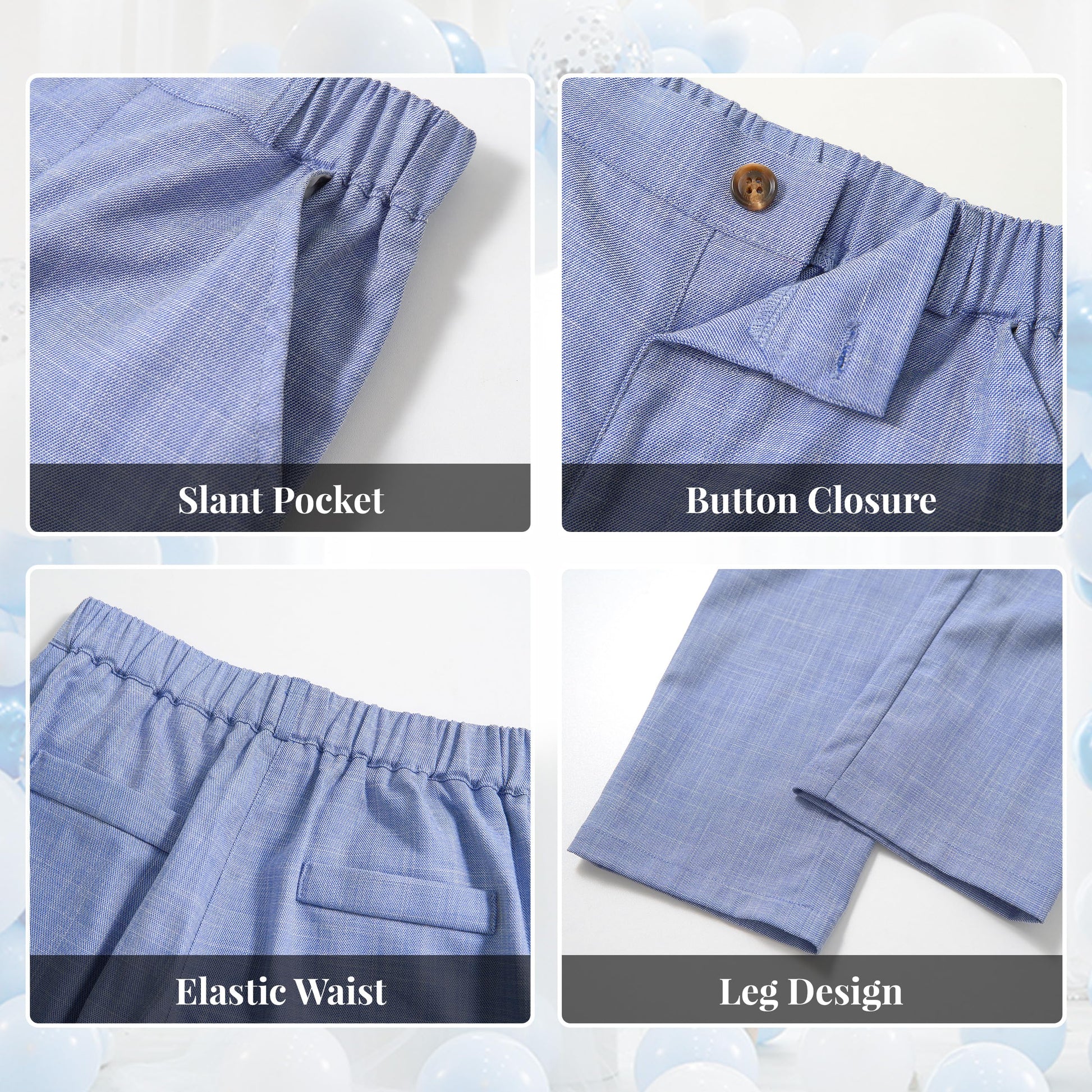 - Blue Dress Pants: Pants come in elasticband design and it can be more suitable for baby's figure with button closure. With 2 little side pockets, it will be more practical to carry small things
