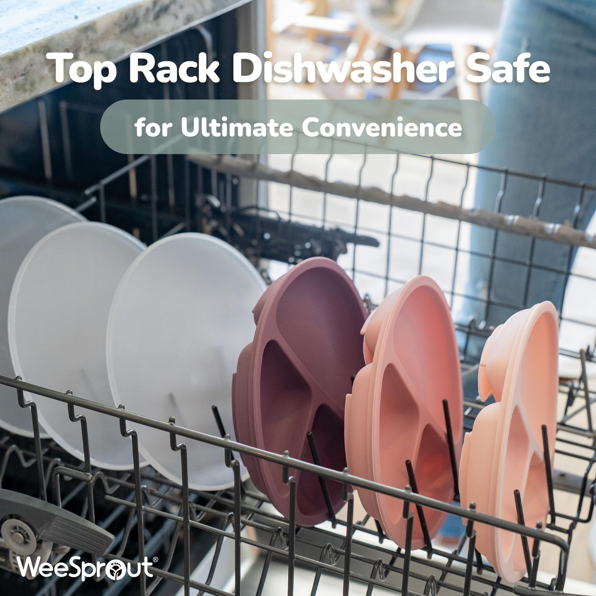 - ✅ FOOD GRADE SILICONE - Voted Best Baby Suction Plate by The Bump, our food grade plates contain no fillers. Unbreakable silicone is the ideal material for toddler dishes – no more cracked plates or spending money to replace them! Plus, silicone is dishwasher and microwave friendly. Remove the lids and pop them in the microwave for a quick reheat, then toss them in the dishwasher for quick and easy clean up!