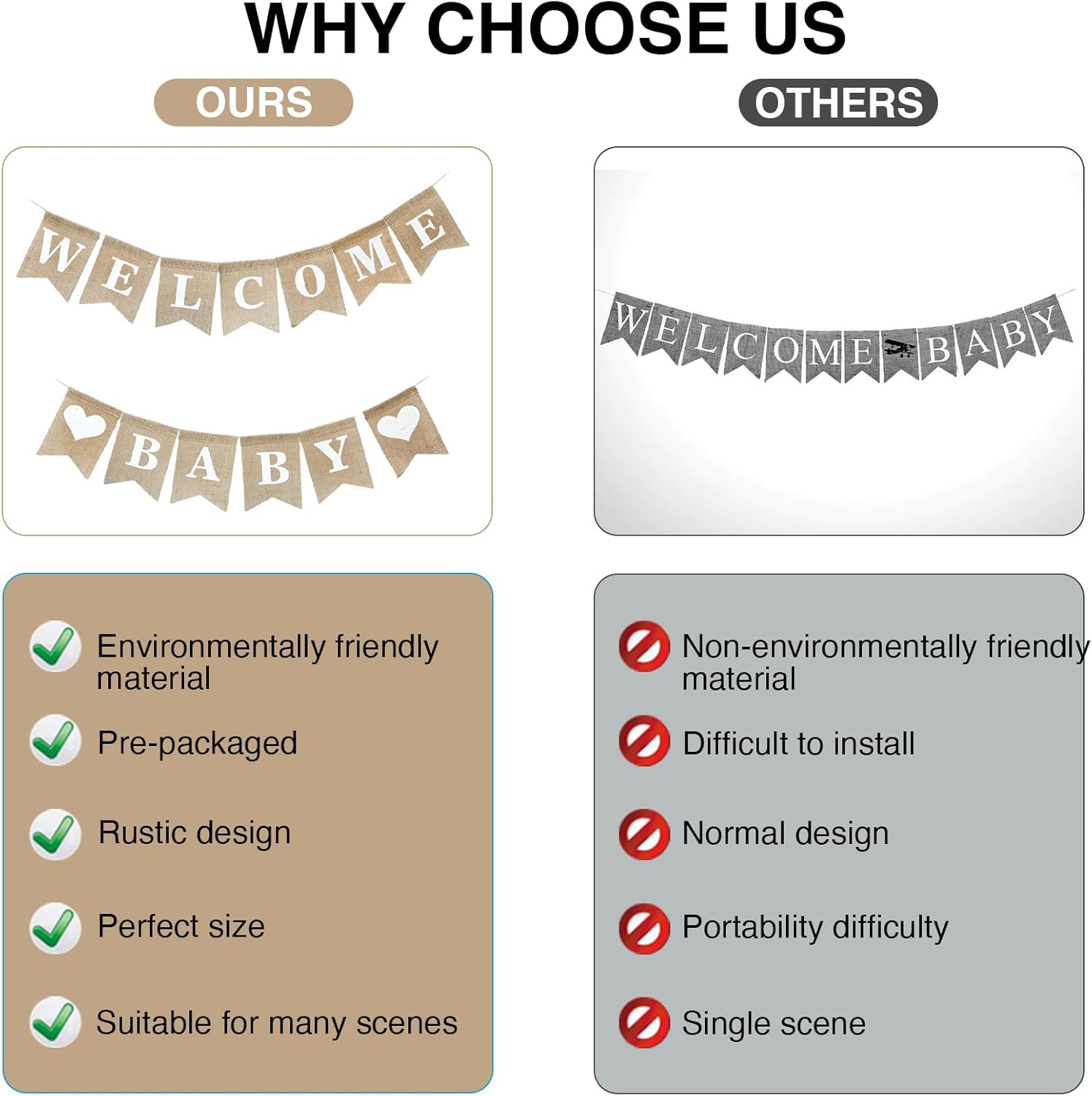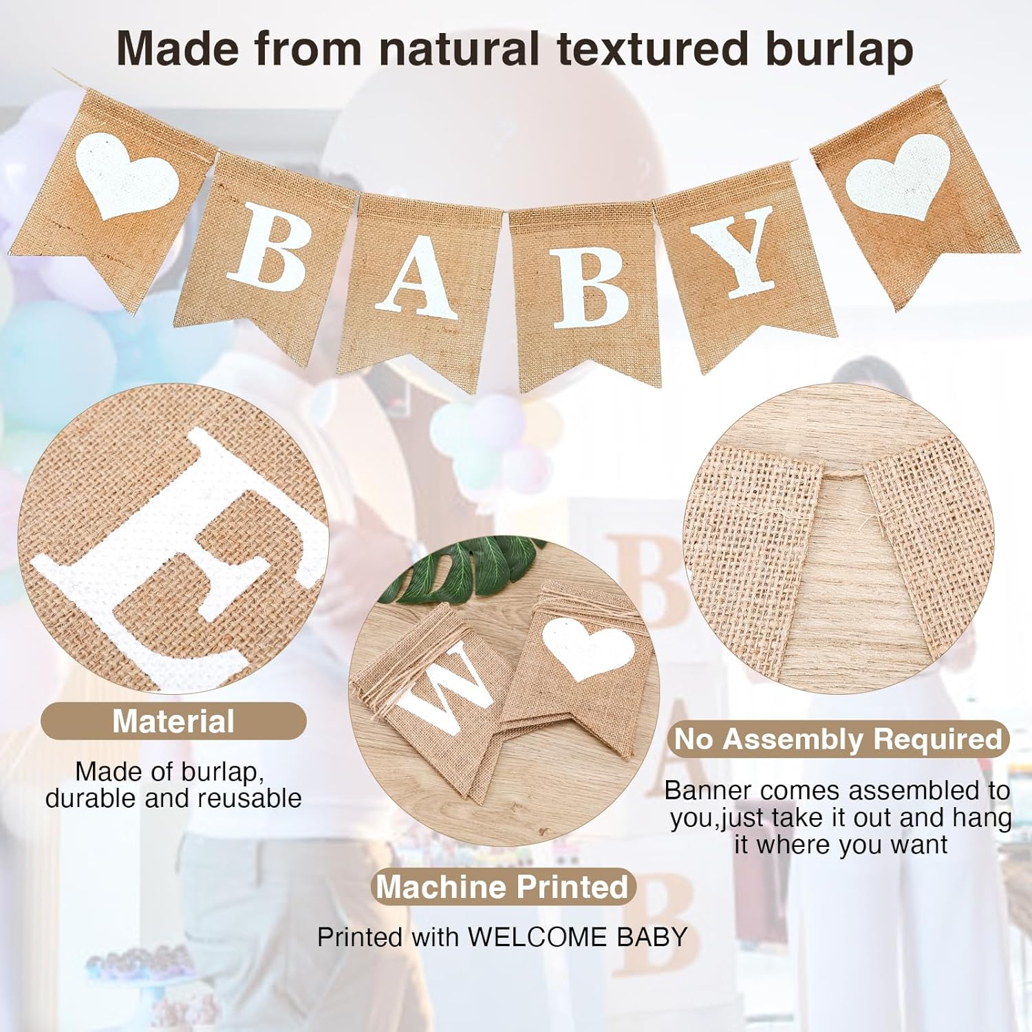 - š¶ Welcome Your Baby In Style: Made from natural textured burlap, our Welcome Baby shower sign will add a touch of rustic, earthy charm to your celebrations, and help you embrace an eco-friendly approach.
