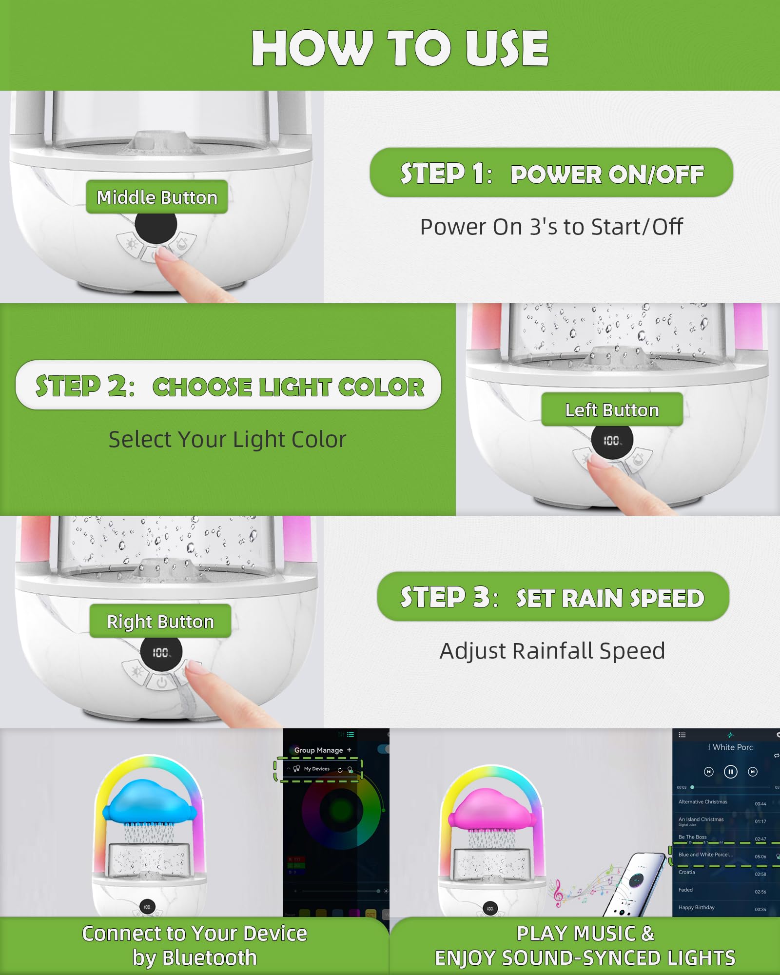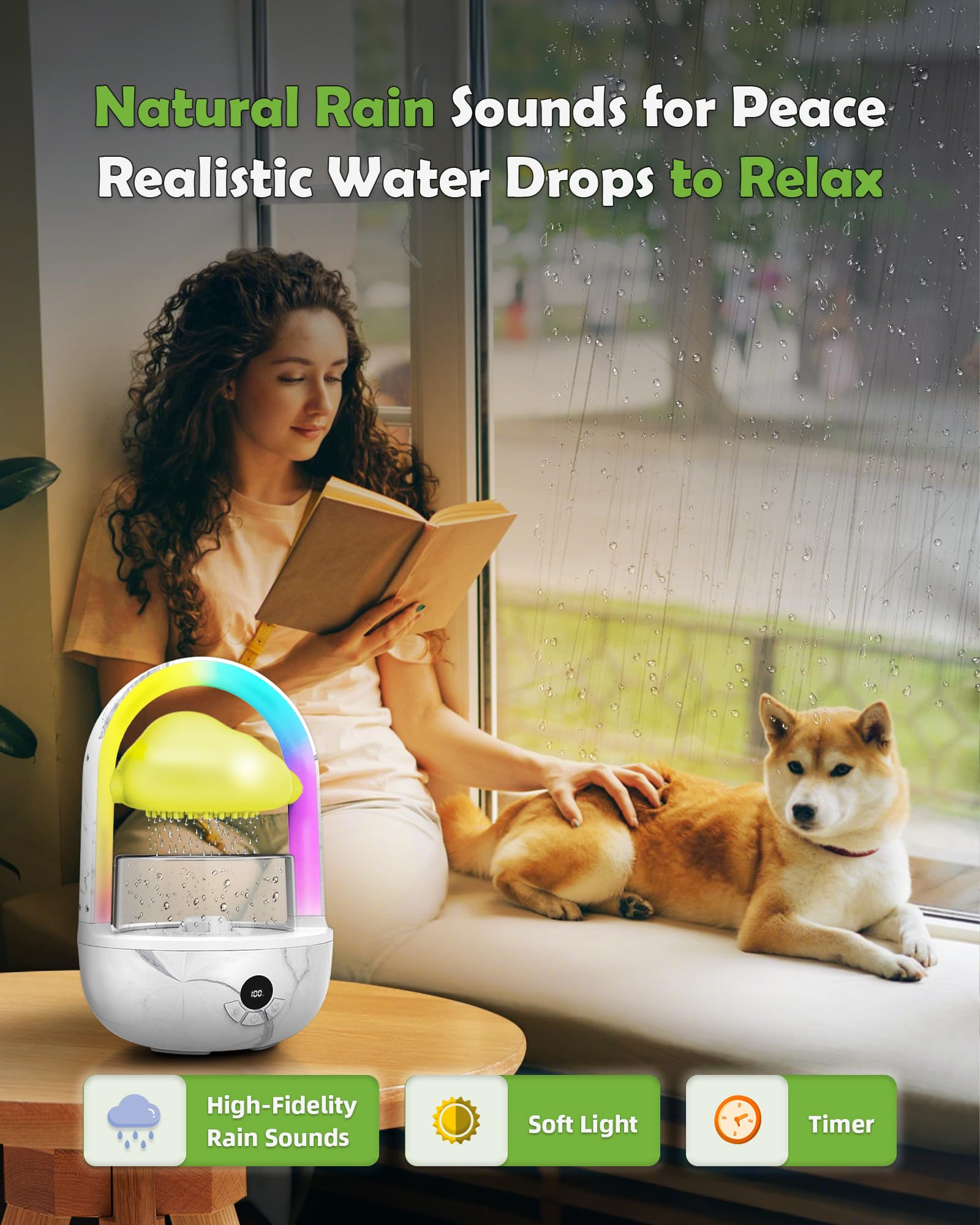 - Enhanced Features: Rain diffuser comes equipped with multiple settings for water speed adjustment, providing a personalized ambiance. The added splash guard helps prevent water splashing, making it ideal for use in any setting