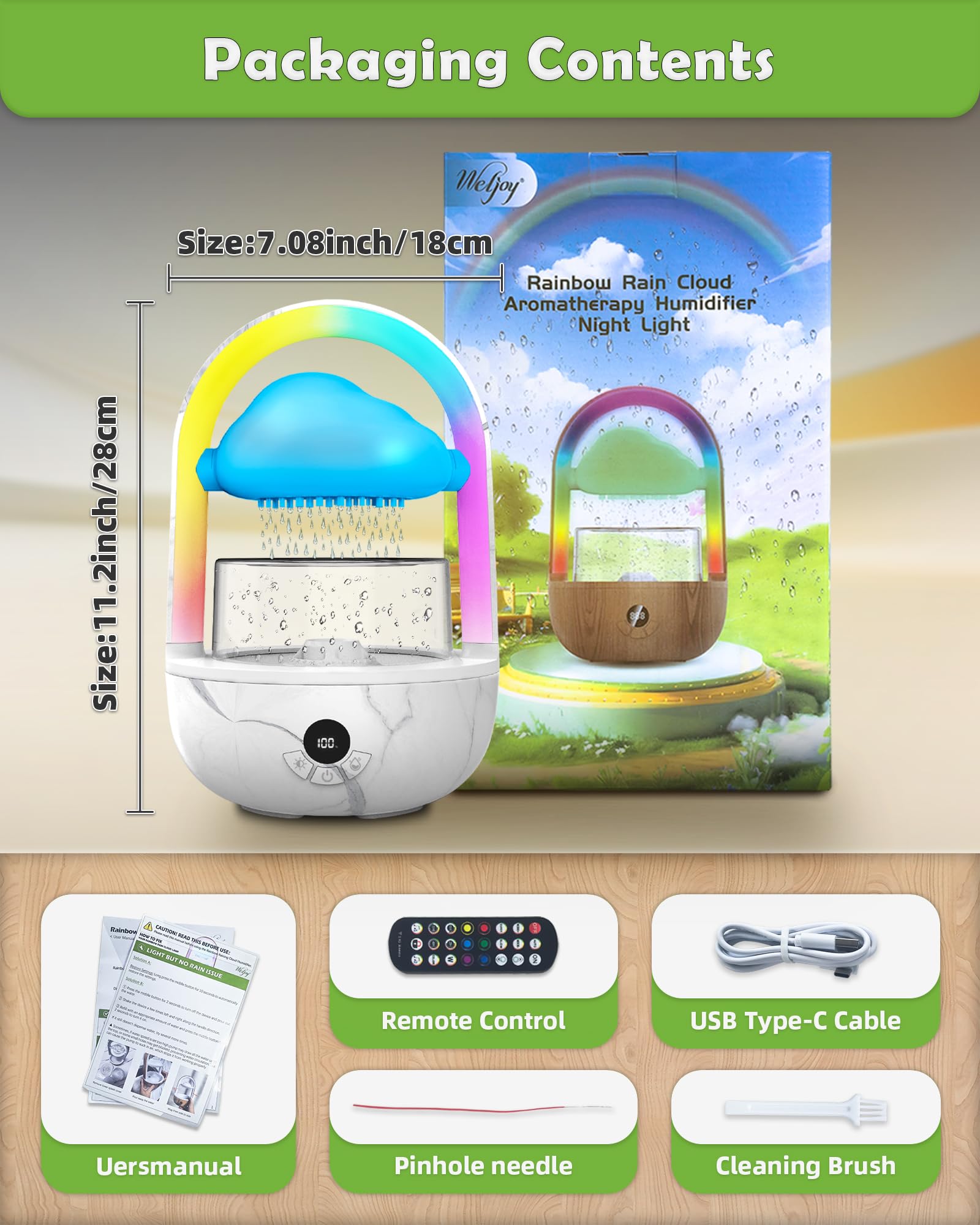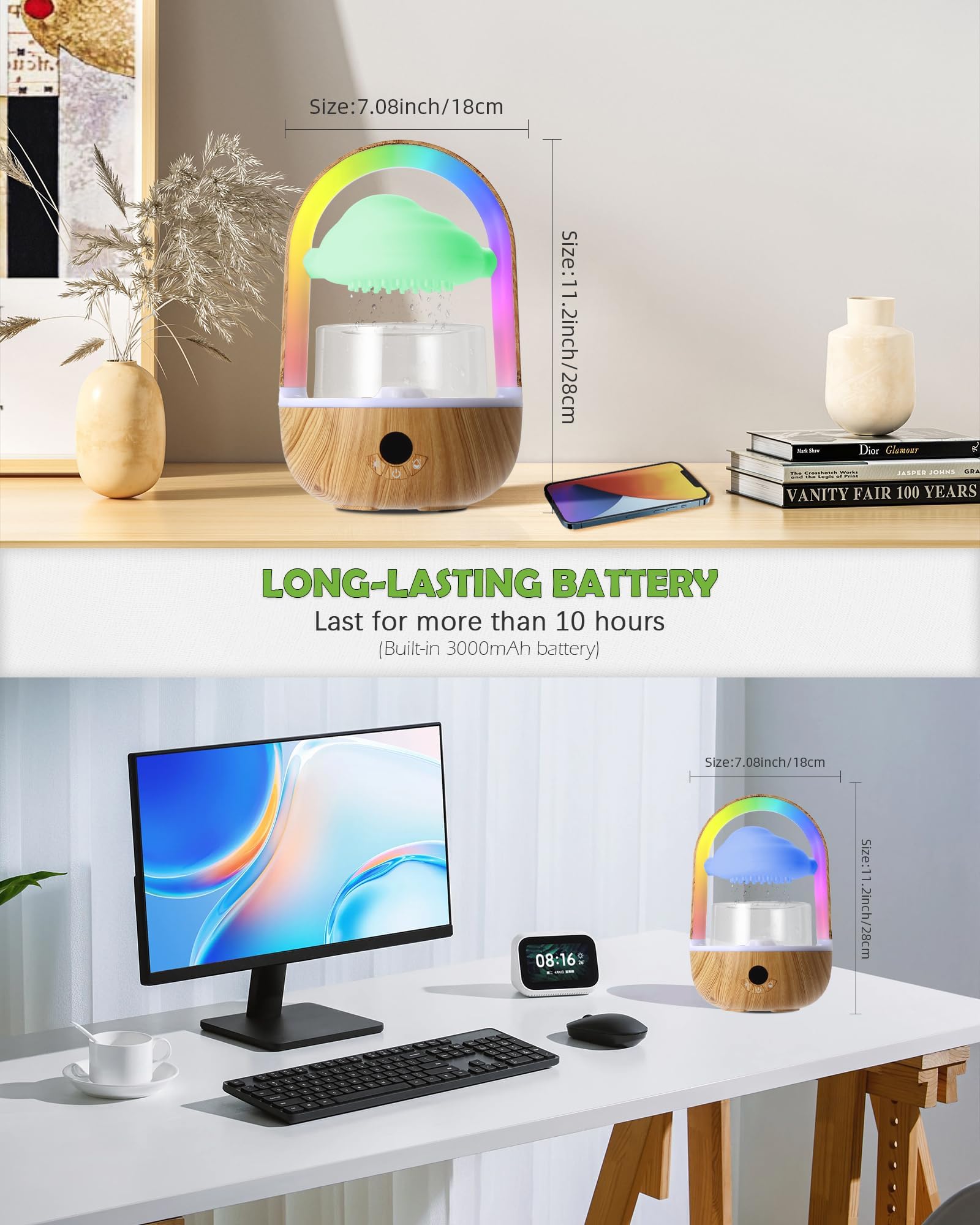 Whether it's a cozy corner in your living room or a tranquil nook in your office, the Rainbow Rain Cloud Lamp is designed to fit and flatter any space. With its elegant form and portable size, it's the perfect companion for creating a personal oasis of calm