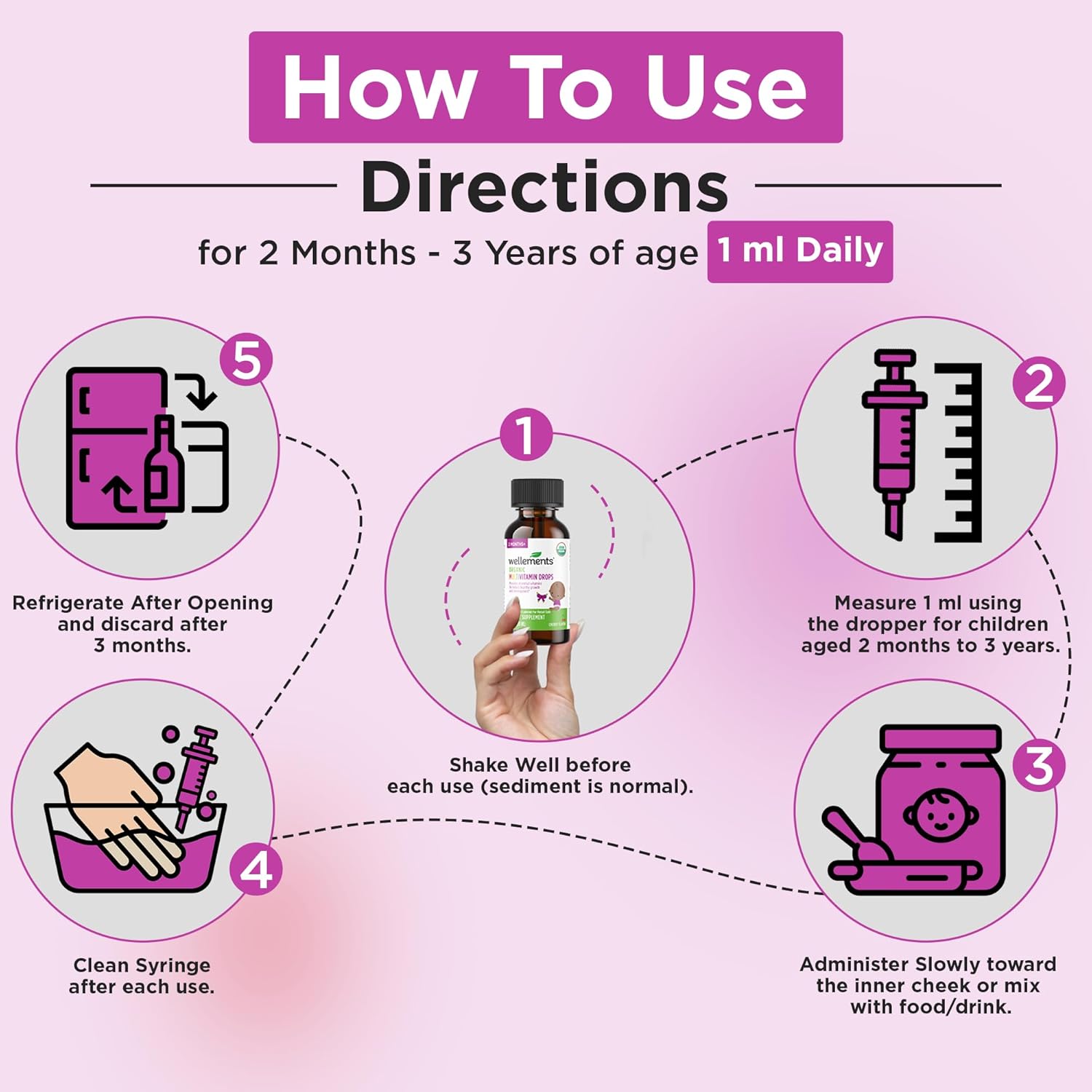 Wellements Organic Baby Multivitamin Drops (1 Fl Oz) - Cherry Flavor Liquid Multivitamins for Infants & Toddlers (2 Months+) - Toddler Vitamins for Immune Support*, Healthy Growth & Bone Development*