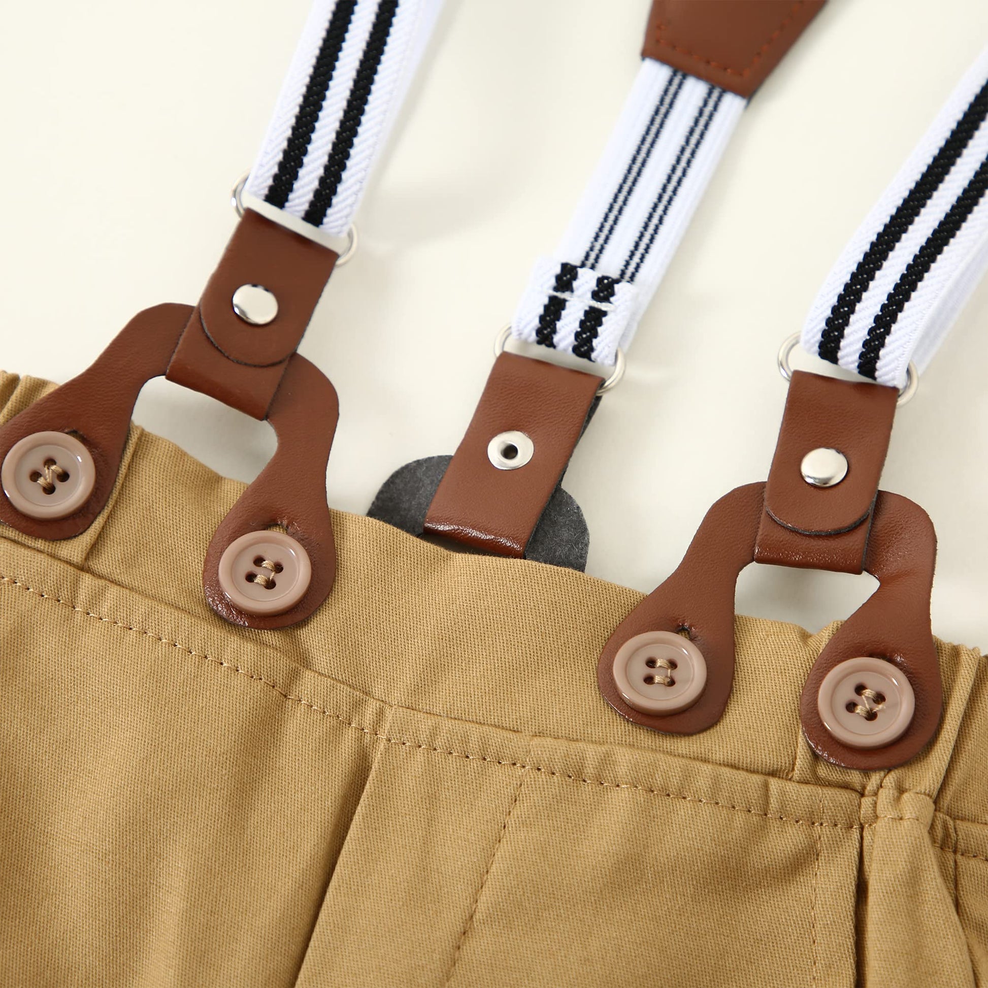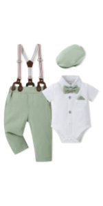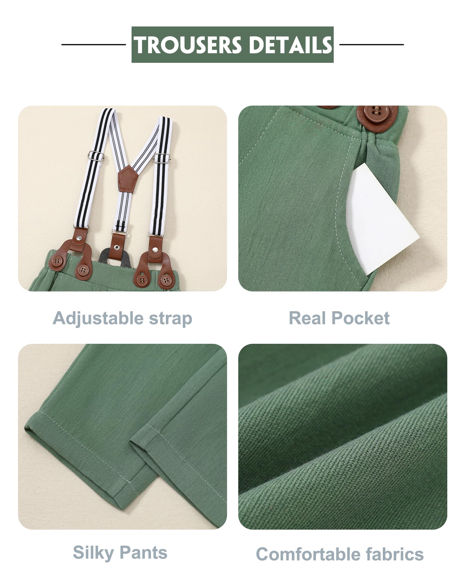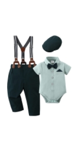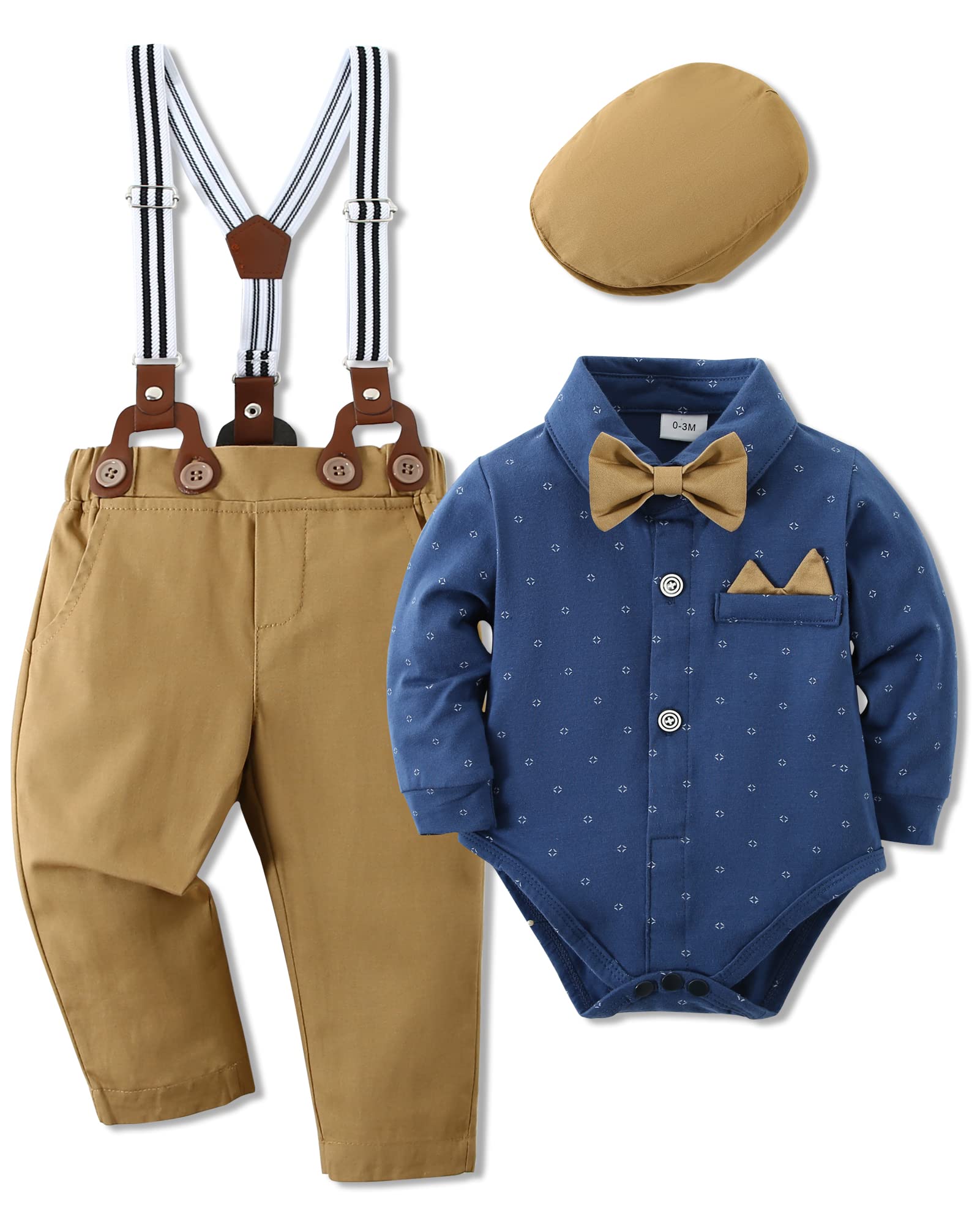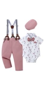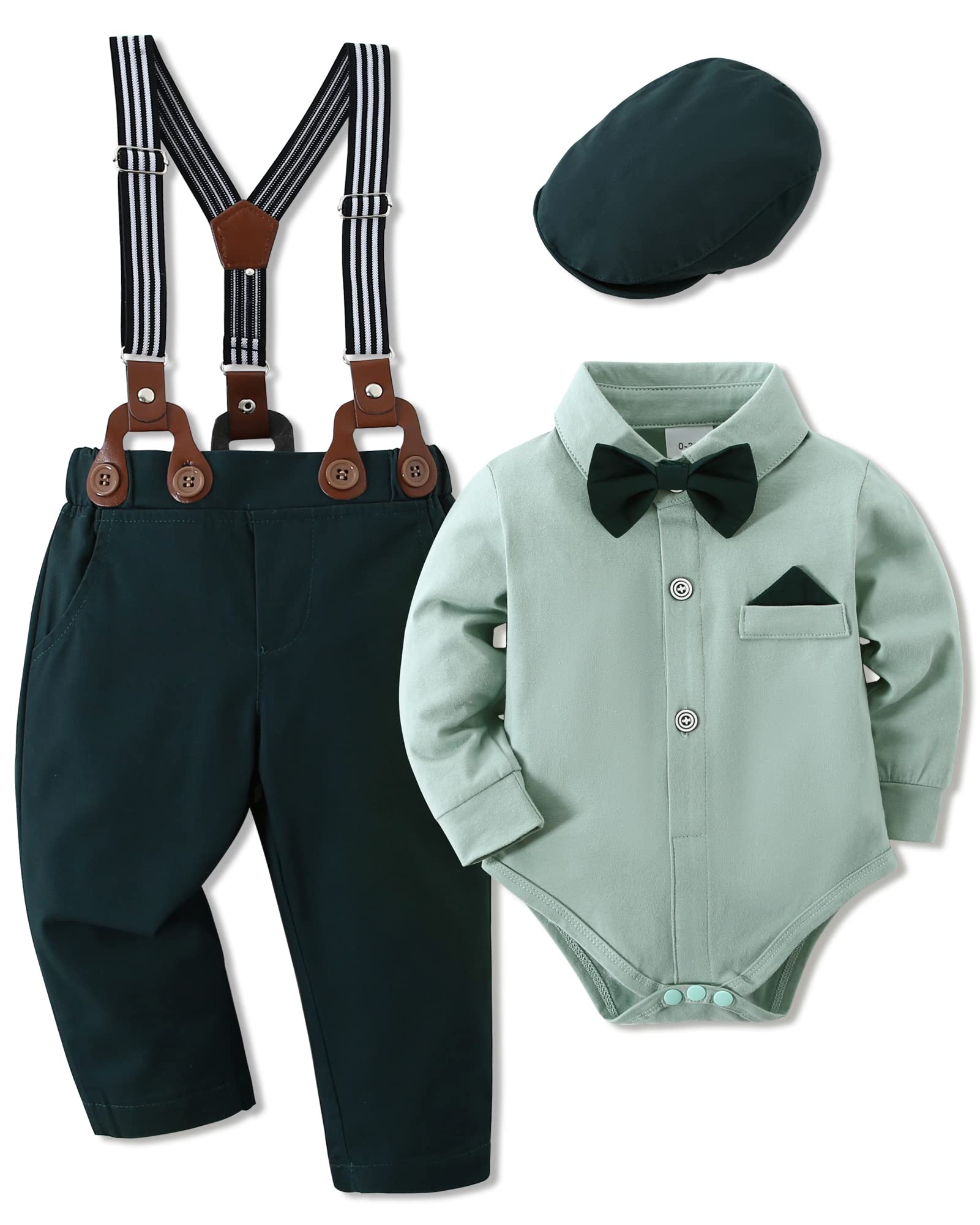 - Package: Baby boys' pants sets include 1* long sleeves romper + 1* suspender pants + 1* beret hat. No special care is needed, but hand washing in cold water is more recommended