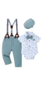 - Style Design: This baby boy outfit's shirt has buttons at the crotch for easy dressing and diaper changes, the high-stretch pant ensure a tredy and comfy fit. Wearable bow and beret improve the fashionable finish of the whole newborn boy outfits.