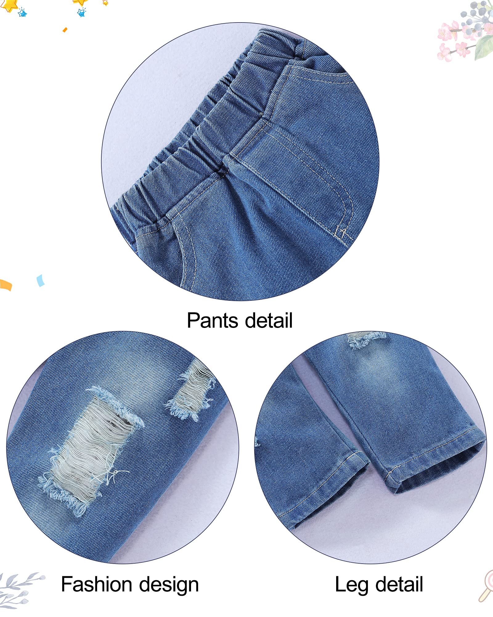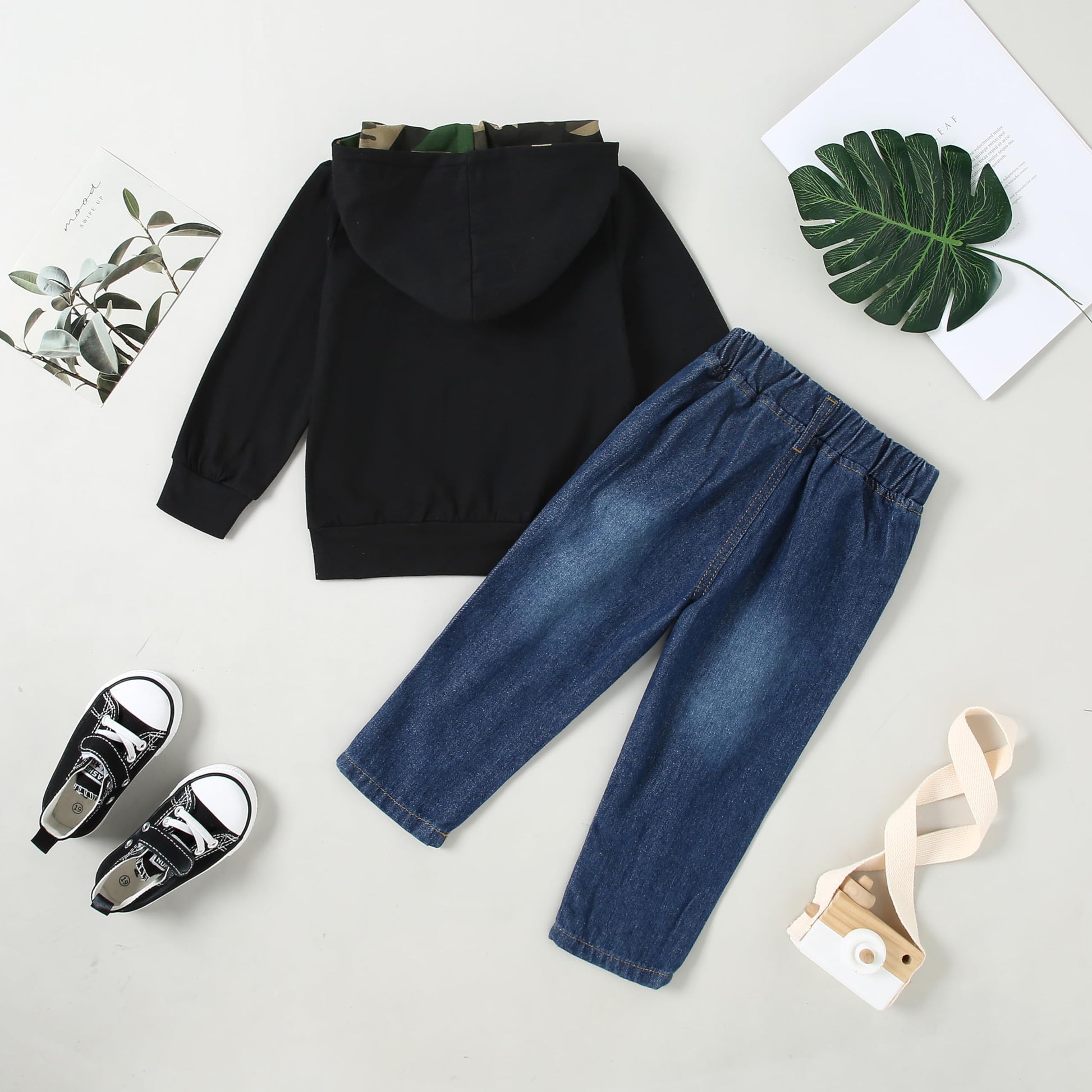 Package include: 1* toddler boy long sleeve hoodies, 1* ripped jeans pant. Perfect 2pcs outfits set for toddler boy 1-5T.