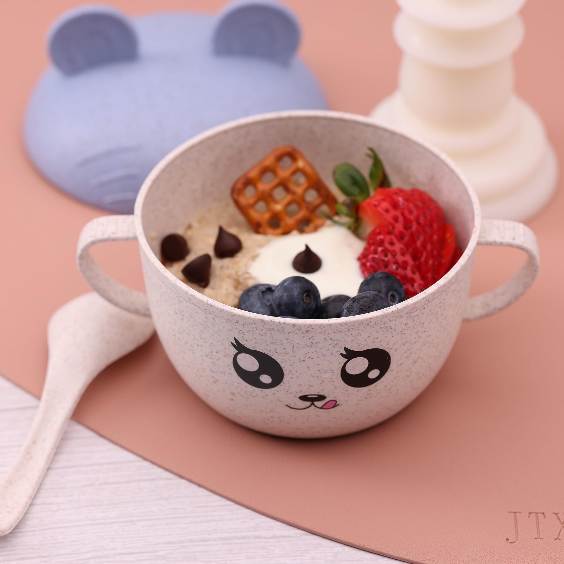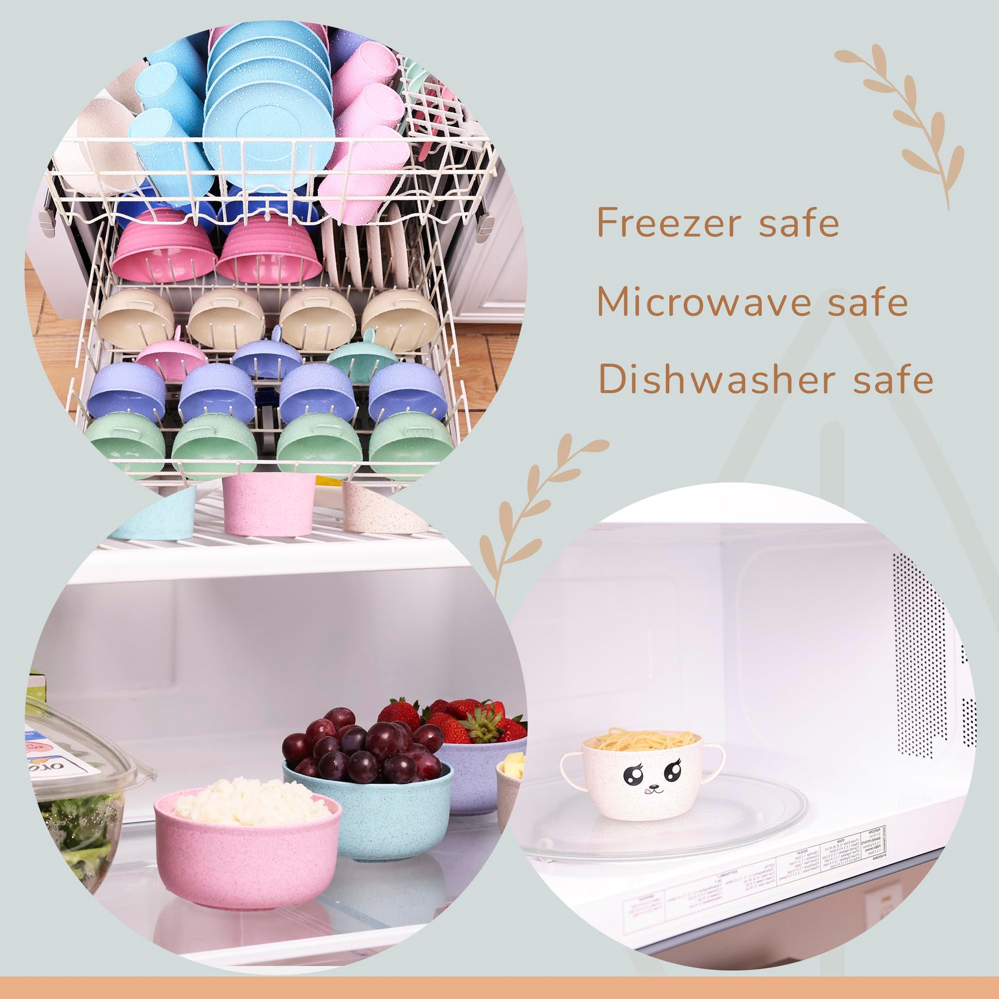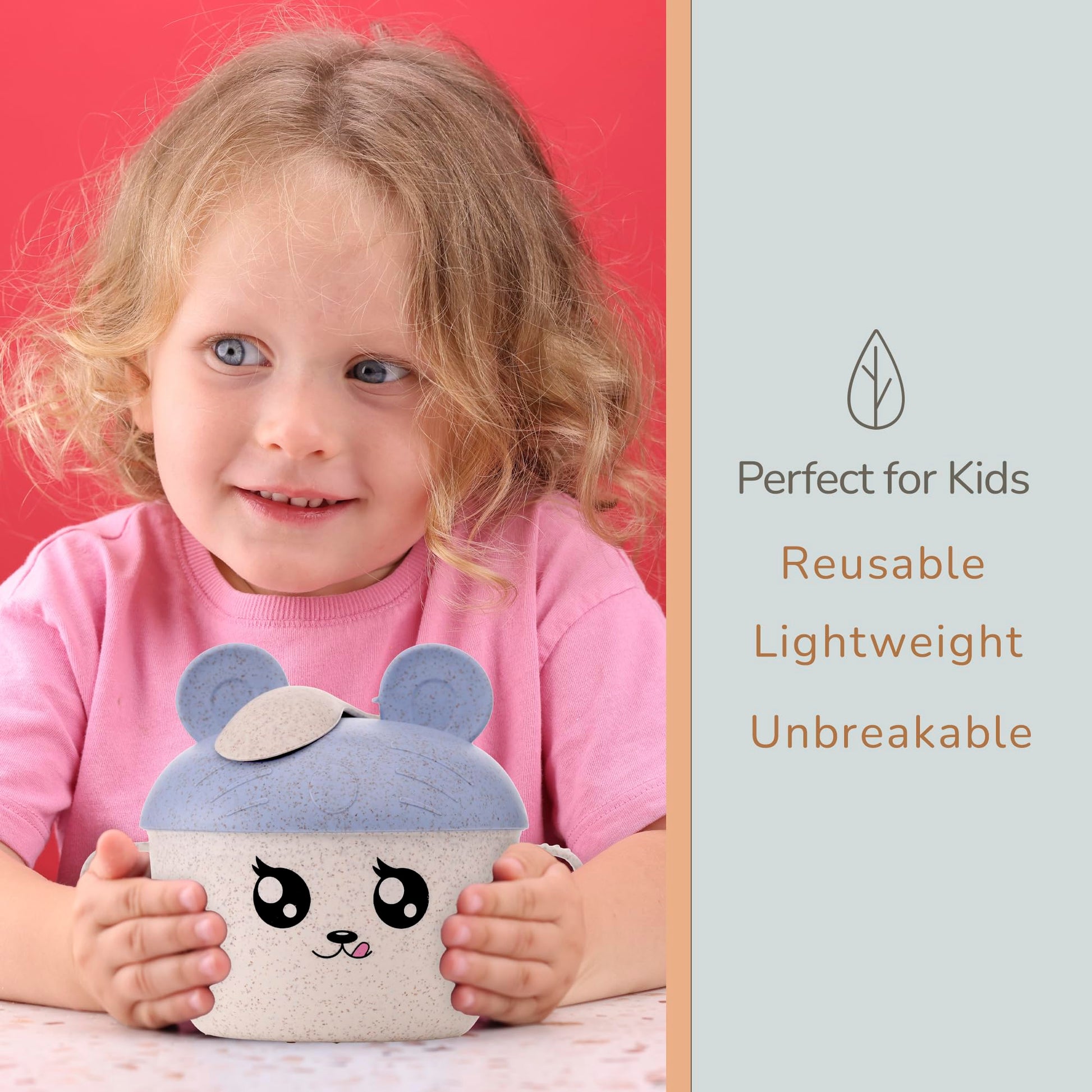 - ADORABLE & ENGAGING DESIGN: Our wheat straw bowl features an irresistibly cute face that will bring smiles and delightful addition to dining experience. Available in 3 beautiful colors: mint green, baby pink, light blue