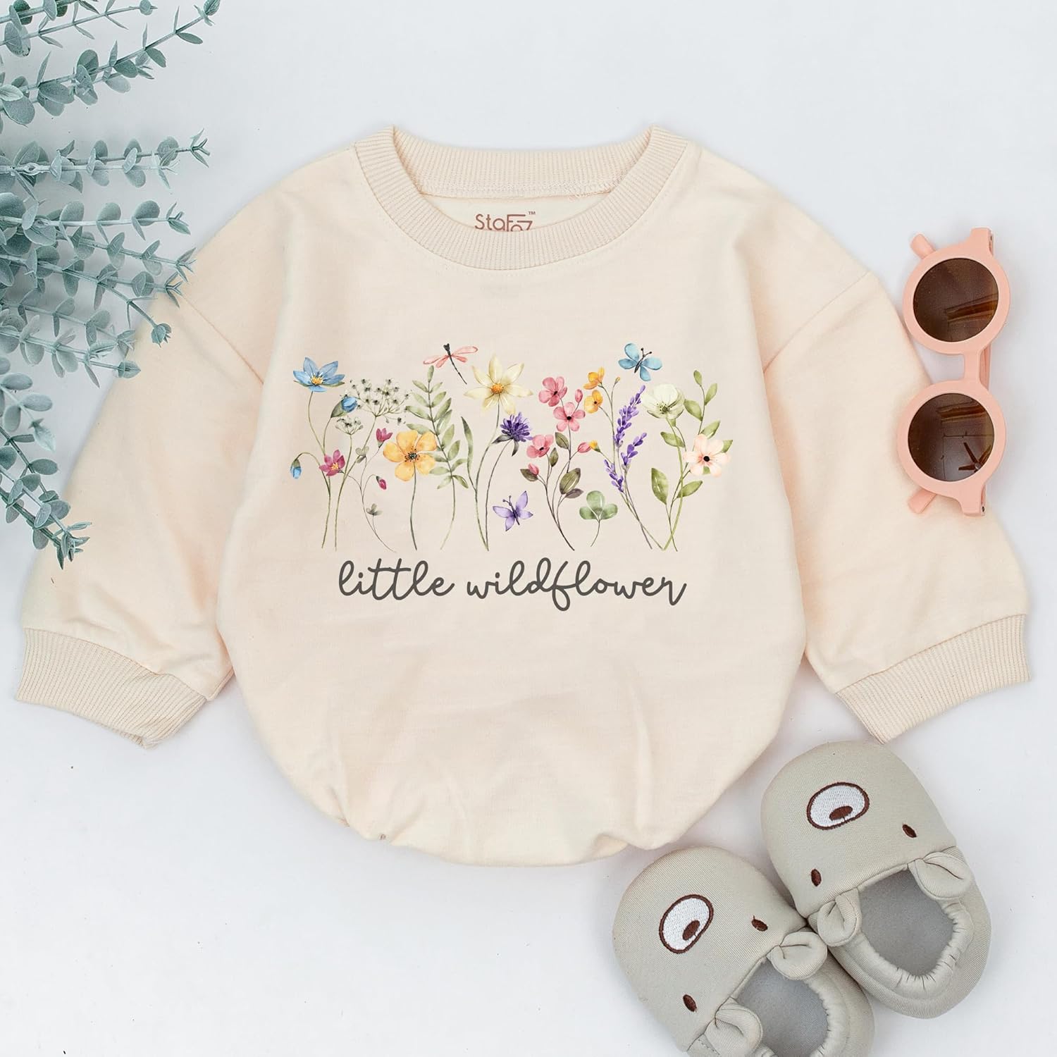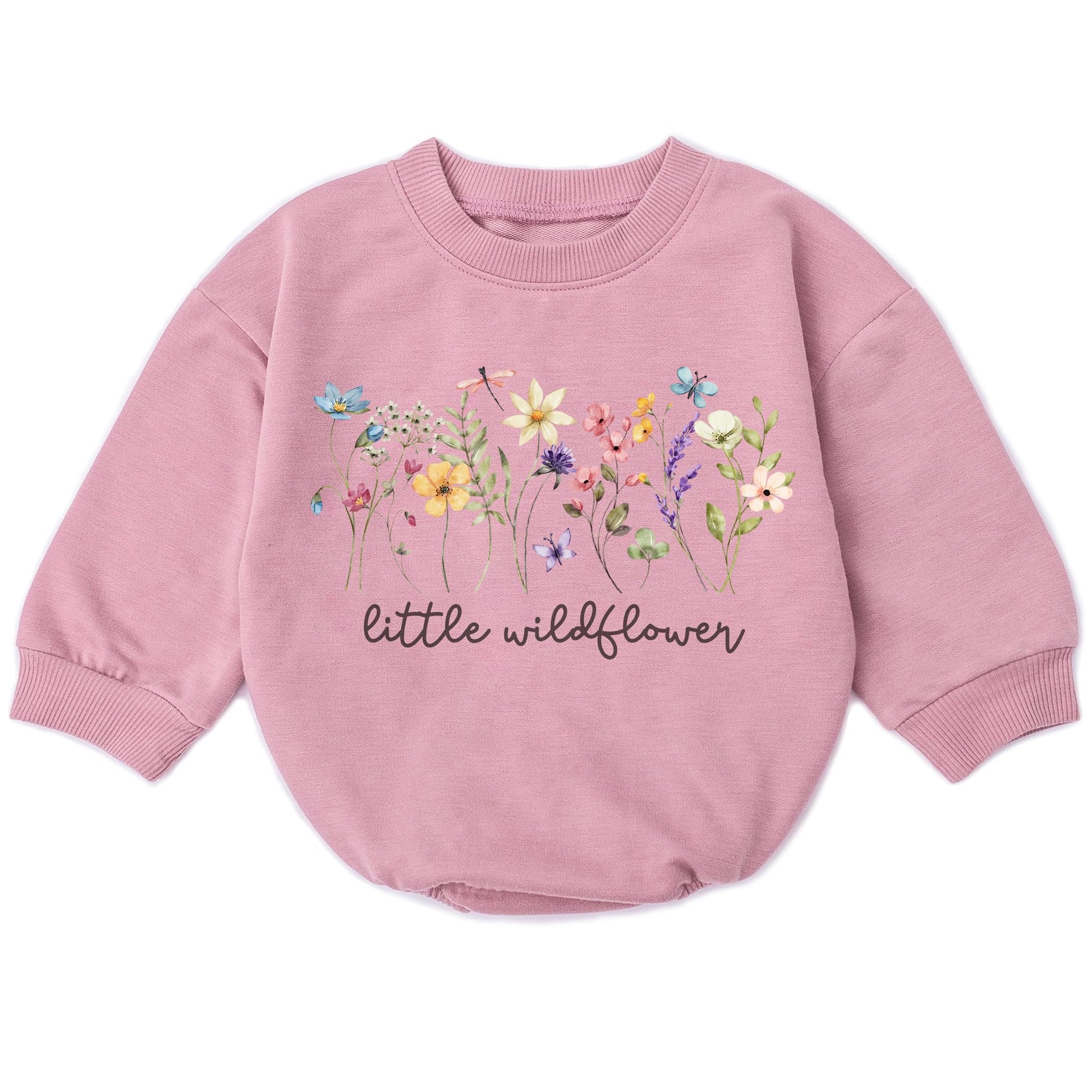 Wildflower Baby Girl Romper - First Birthday Outfit Flower Newborn Bubble Toddler Infant Long Sleeve One-piece Gifts