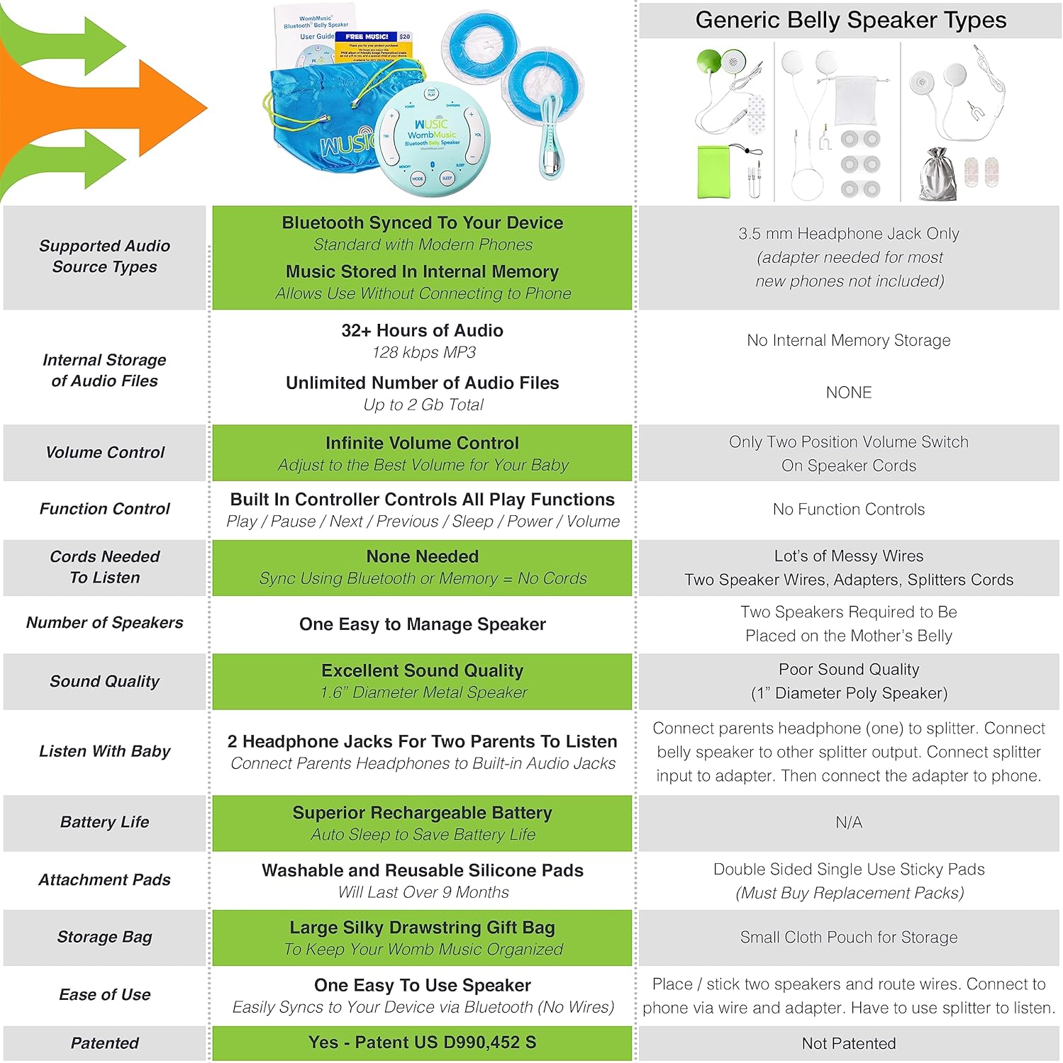 - SAFE FOR BABY - The Only PATENTED, FCC APPROVED, and BLUETOOTH CERTIFIED Pregnancy Belly Speaker LIMITED FOR BABY SAFE VOLUME LEVELS! Create beautiful memories together with the power of music and recorded voices. Our New Womb Music Belly Speaker is the only wireless Bluetooth Belly Headphone safe and fully certified by Bluetooth and the FCC. CERTIFICATIONS are posted on our website. You can stream your favorite audio files using Bluetooth synced from your device, or play music stored directly on your Womb Music Belly Speaker.