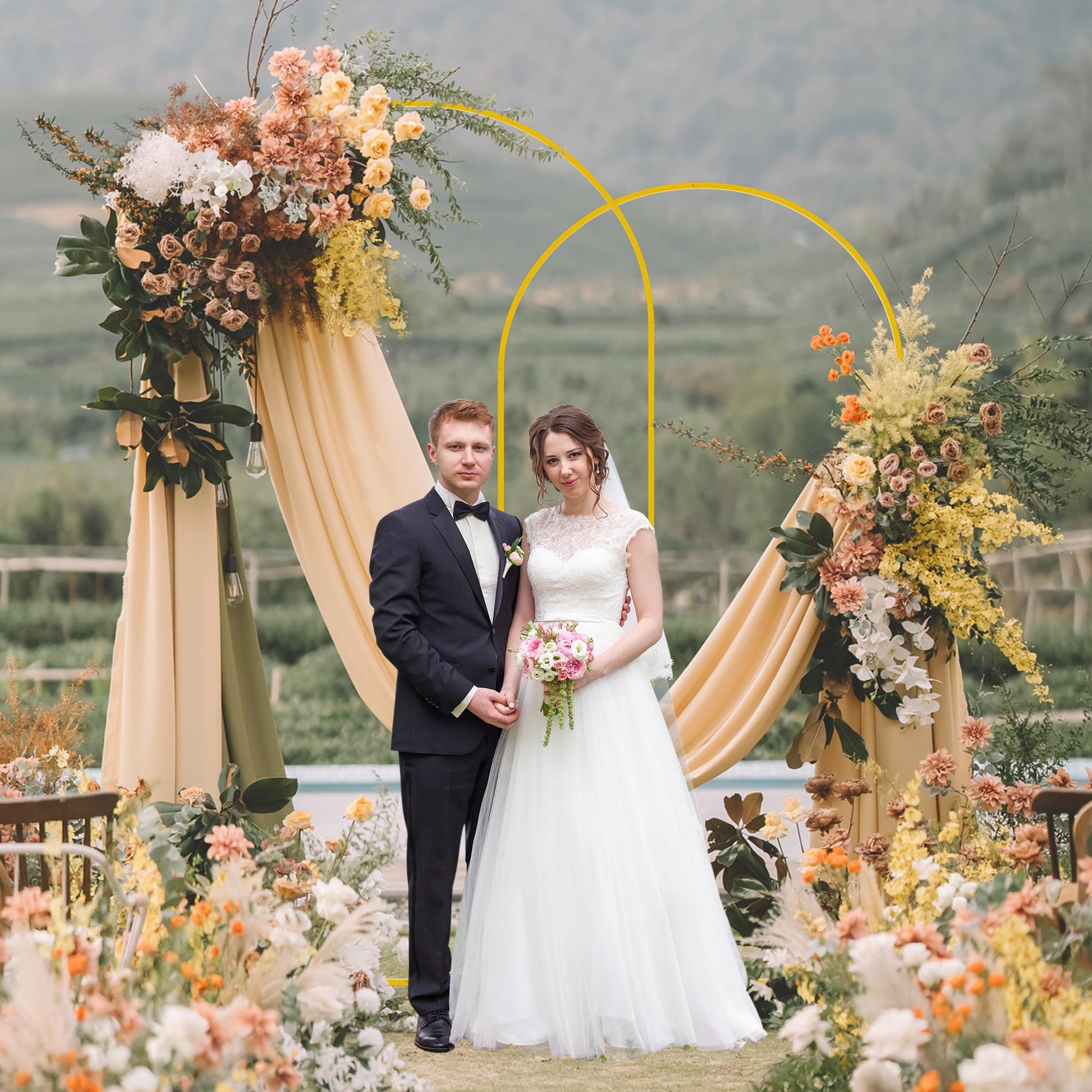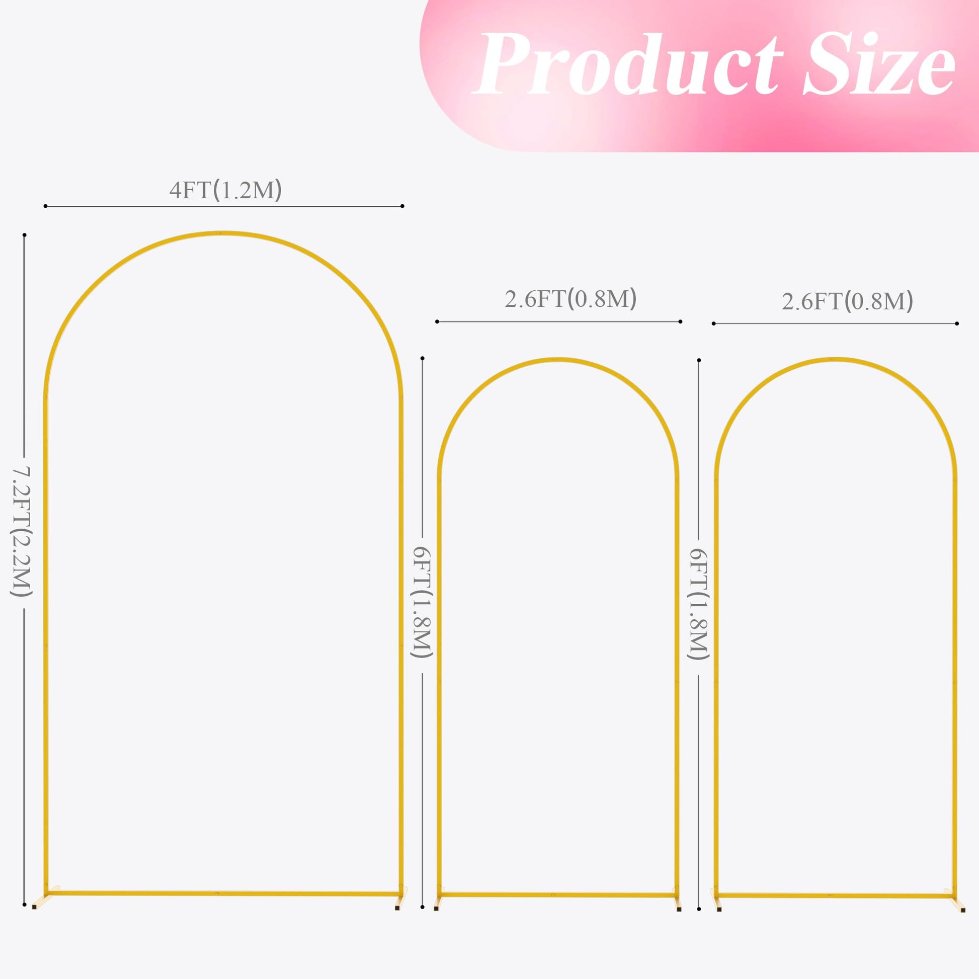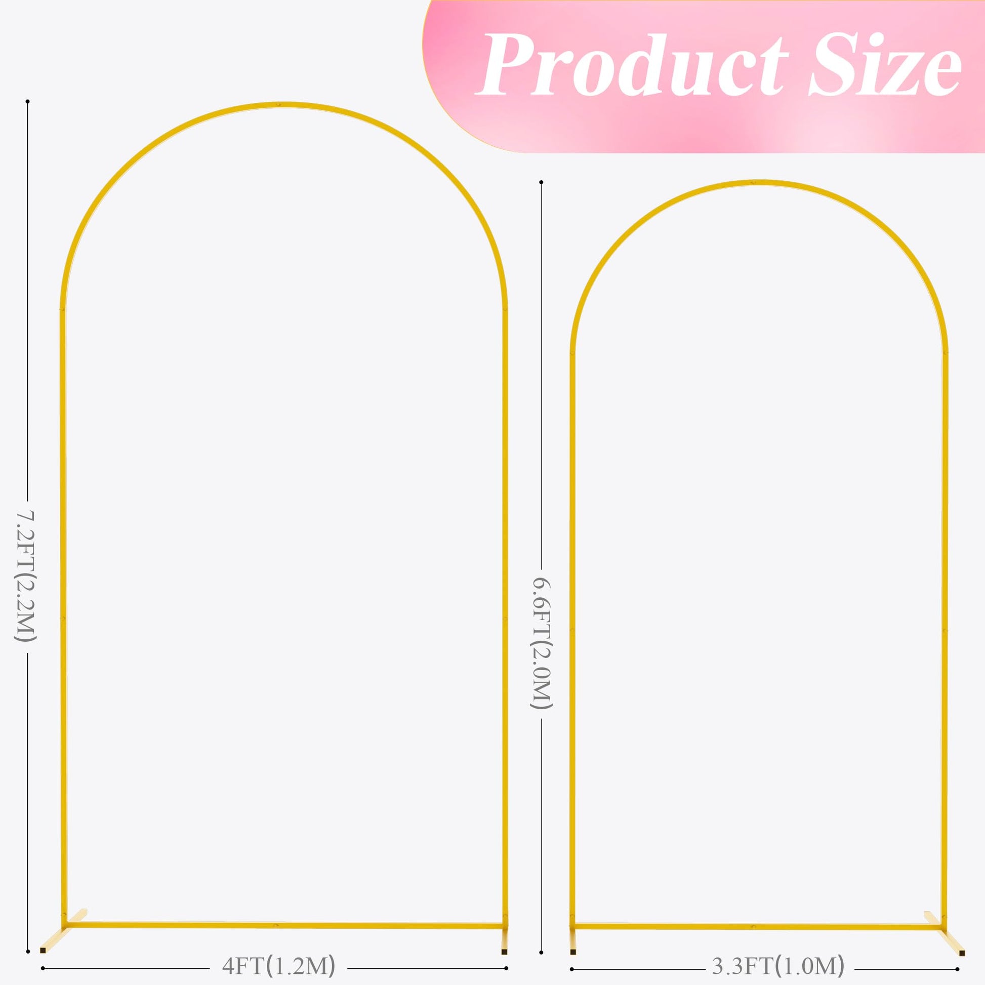 - 【Set of 2 Wedding Arch Stand】7.2x4ft (HxW) and 6.6x3.3ft (HxW) Metal wedding arch backdrop stand is made of quality anti-rust metal material, durable for indoor and outdoor use. Elegant door arch shape of this gold arch backdrop stand will give you a breathtaking decors for your event.