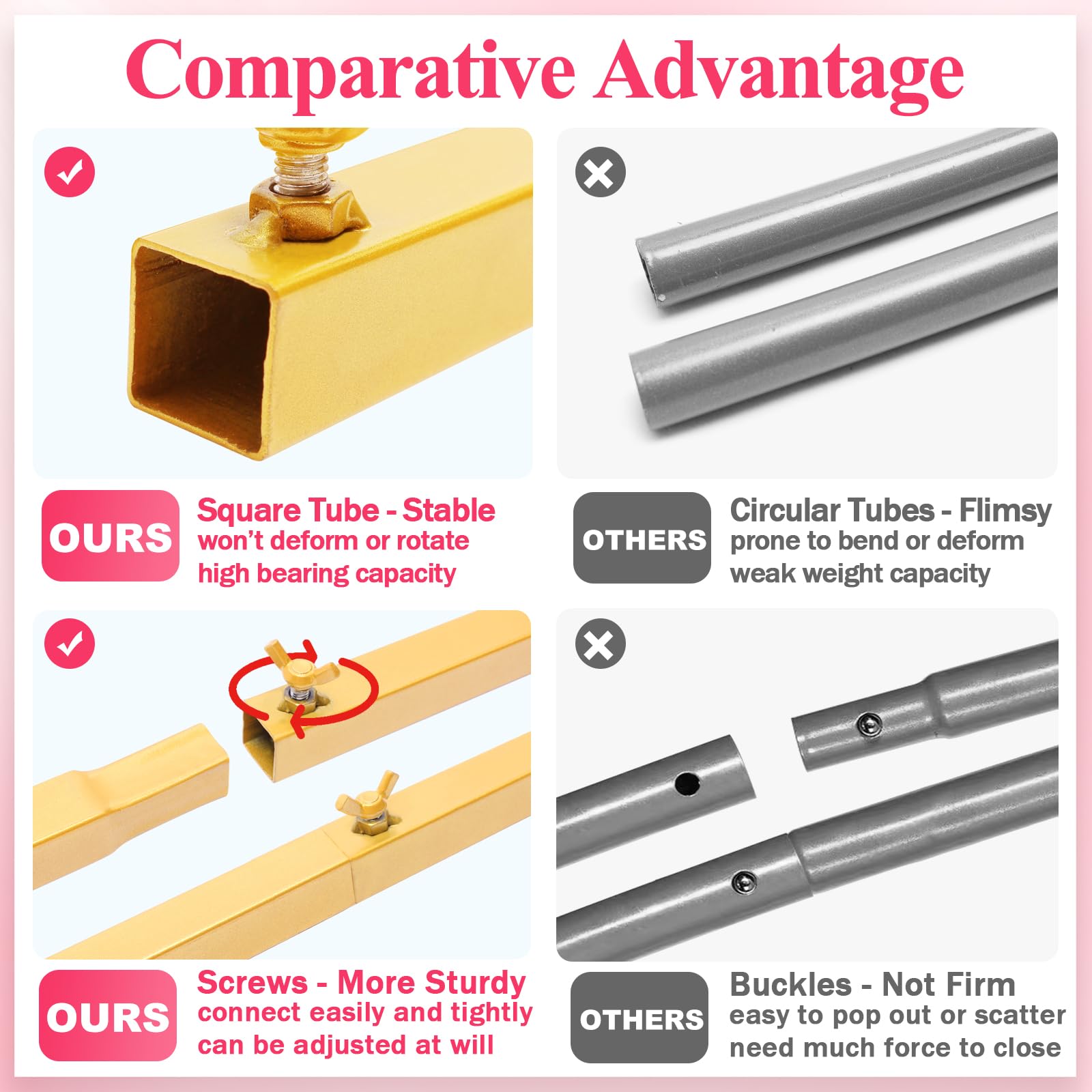 - 【Easy Assembly and Portable】Metal wedding arch stand can be quickly assembled with screws in minutes. Portable and convenient to carry and space it anywhere for a party decor at your will. Gold metal square wedding arch backdrop stand would be a graceful archway in your party event or garden.