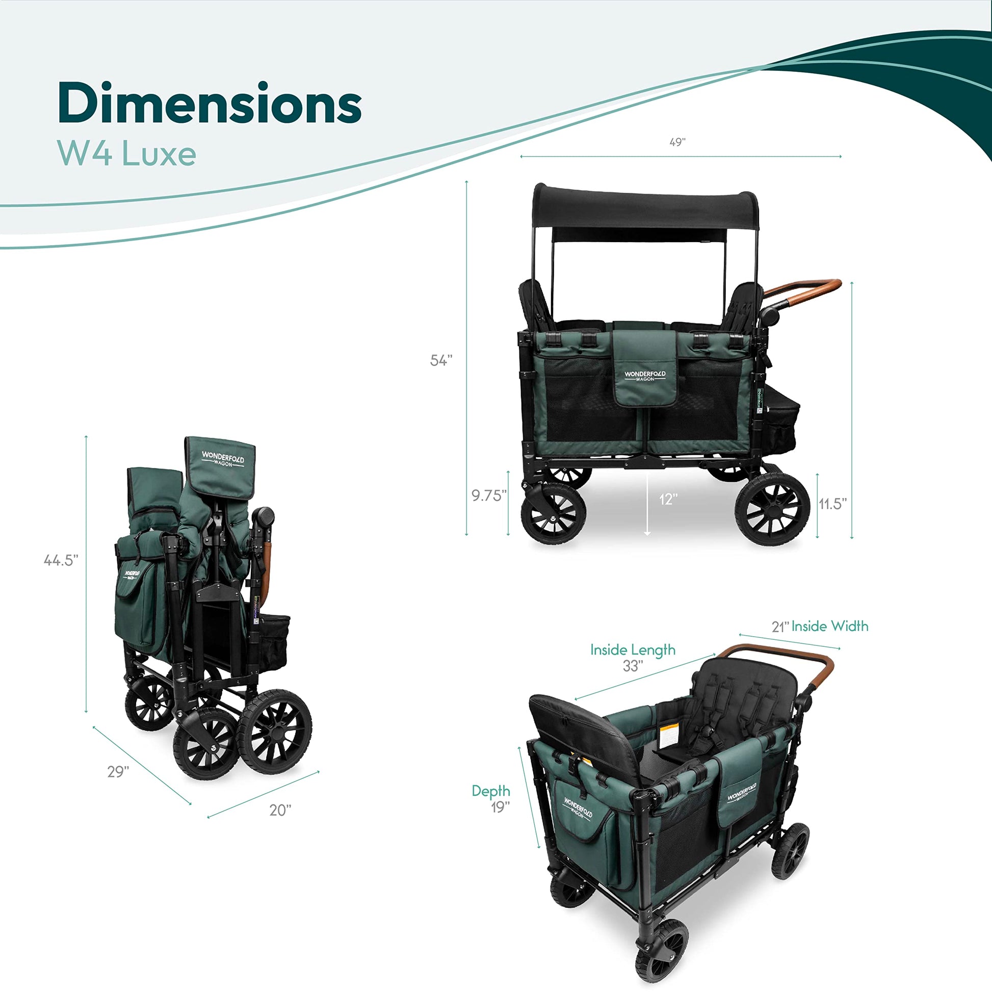 WONDERFOLD W4 Luxe Quad Stroller Wagon Featuring 4 High Face-to-Face Seats with Magnetic Buckle 5-Point Harnesses and Adjustable/Removable UV-Protection Canopy, Hunter Green