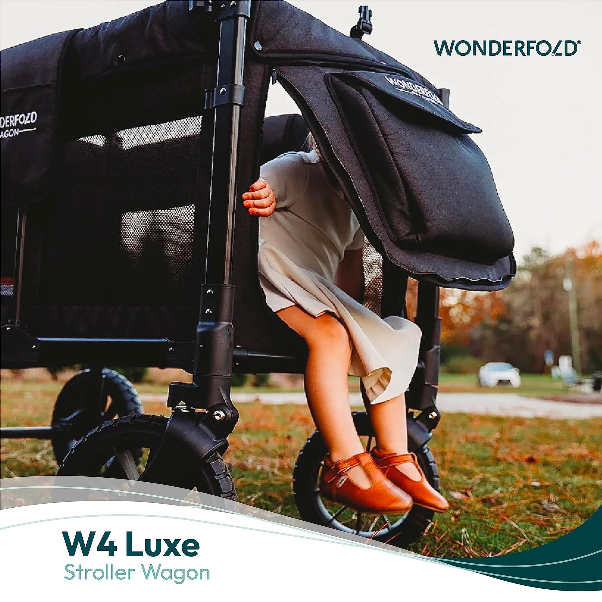 Baby bags. Booster seats. Baby Strollers. Sometimes, taking our little ones on the go with us is nearly impossible! Babies and toddlers alike love strolling around in the WonderFold W4 Luxe Quad Stroller Wagon, secured in a 5-point harness with magnetic buckles and covered by a UV-protected canopy. This stroller wagon makes it easy to take the entire family to the park, beach, campsite, and more!