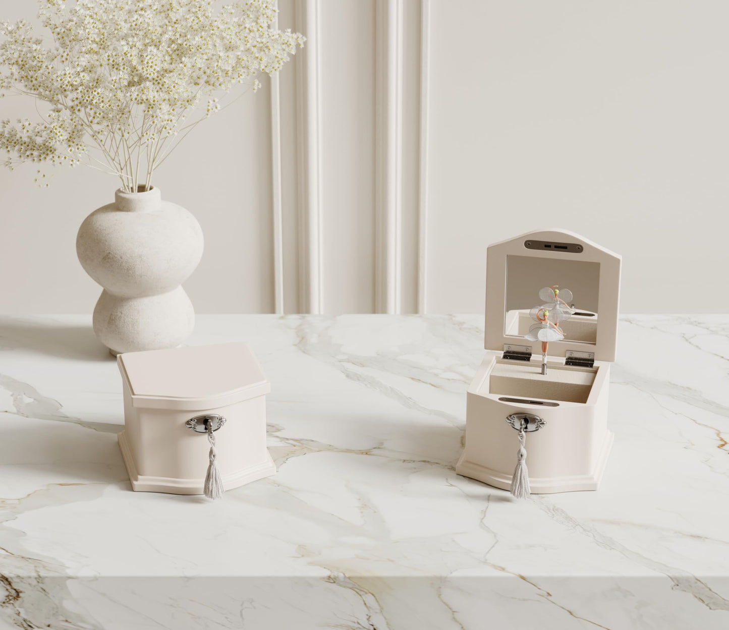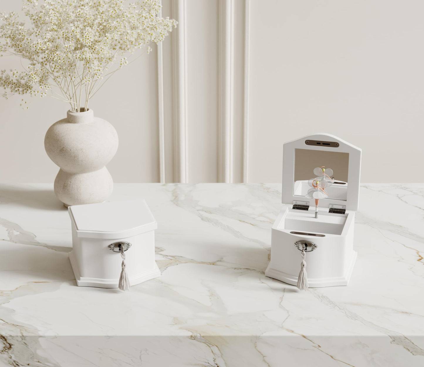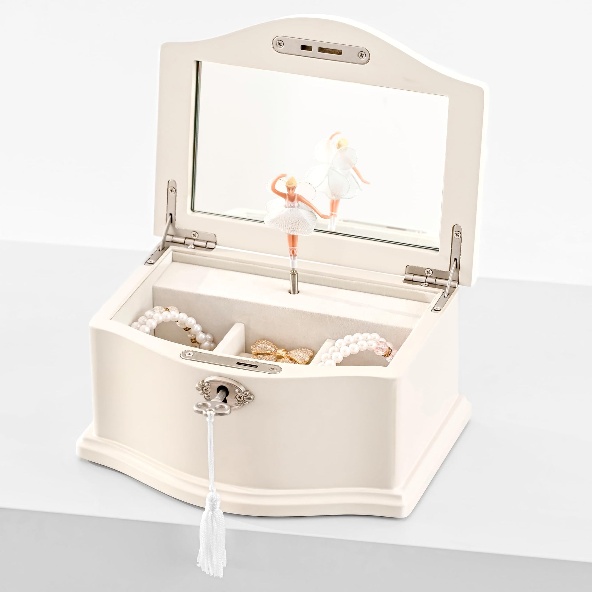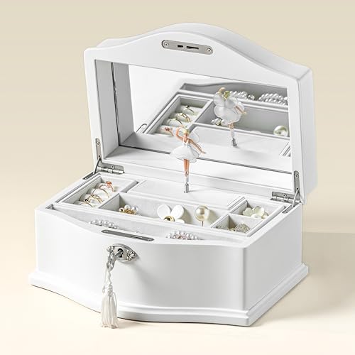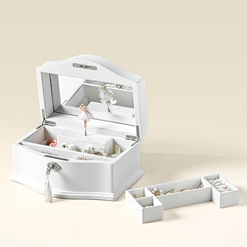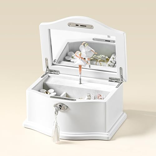 - FUNCTIONAL DESIGN: Our box includes a built-in mirror, a ballerina doll that twirls delicately to the melody of “You Are My Sunshine” when opened, and a wind-up mechanism with bottom springs. No battery is required for lifetime music.