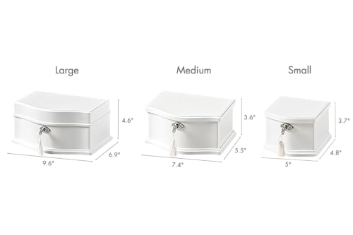 - MULTIPLE COMPARTMENT SPACES: Designed with various compartment sizes and ring rolls, offering ample space for organizing your jewelry. The large-sized box also includes a removable tray, providing additional storage capacity for your growing collection of treasures.