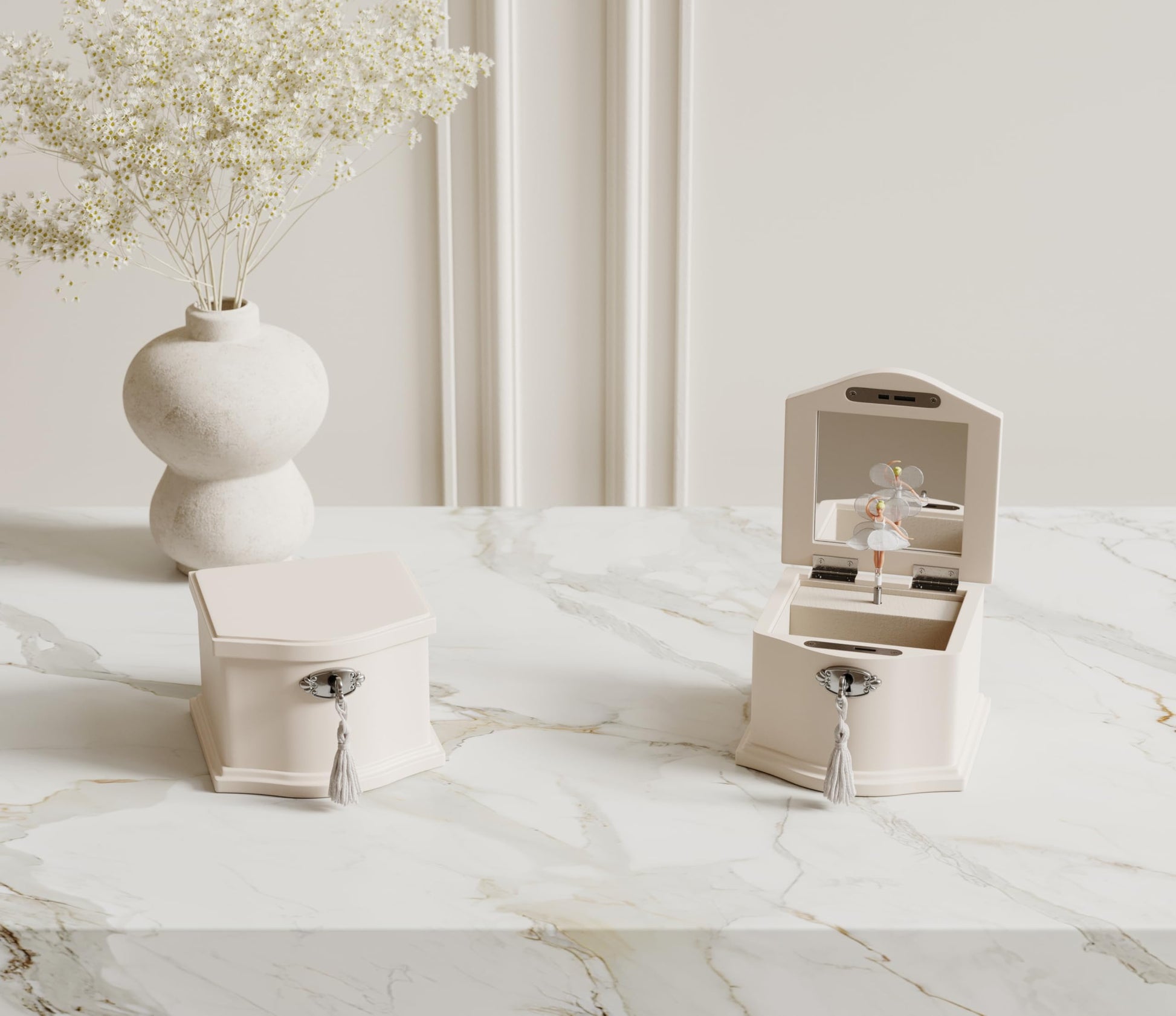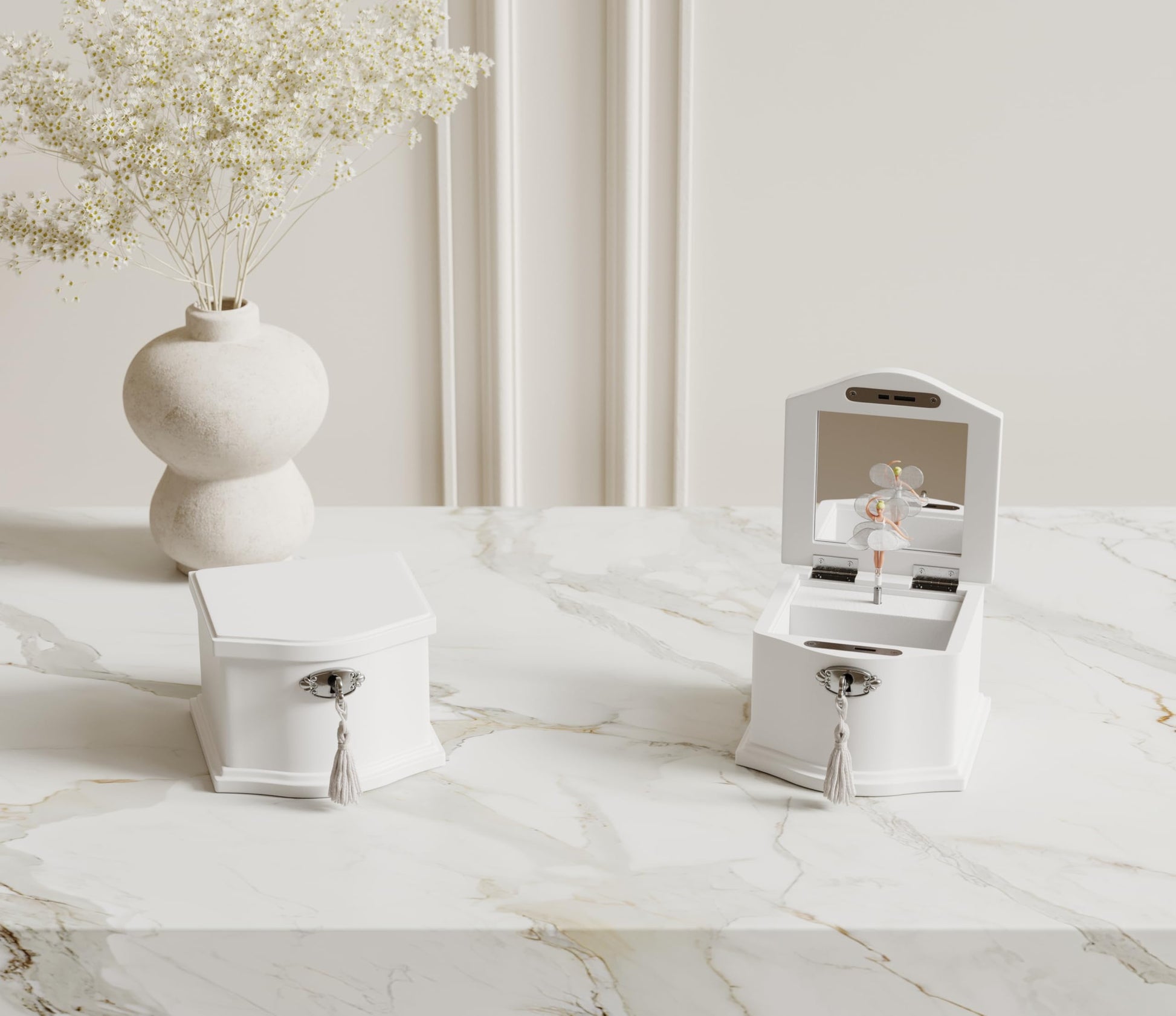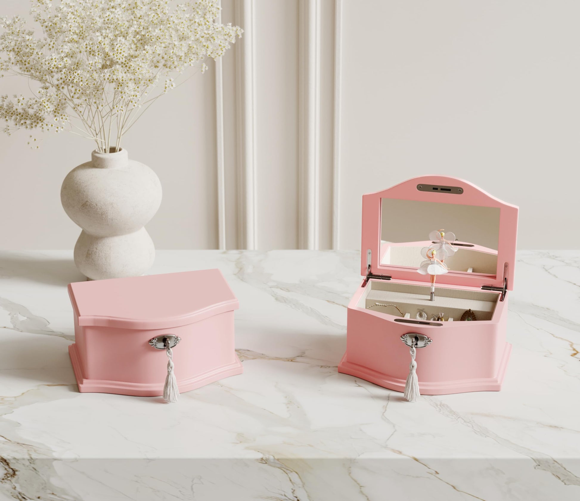 Bring a touch of magic and elegance to your jewelry storage with our musical jewelry box, where every opening is a delightful experience. Crafted with meticulous attention to detail, this jewelry box opens to reveal a graceful ballerina doll that twirls delicately to the classic melody "You Are My Sunshine", evoking a sense of nostalgia and wonder. Designed with multiple compartments, this jewelry box provides ample space for organizing all your treasured accessories. The soft, velvet-lined interior ensures your jewelry is protected and beautifully displayed. Whether for a young girl’s first jewelry box or a cherished keepsake for a loved one, this musical jewelry box makes an exquisite gift for any occasion.