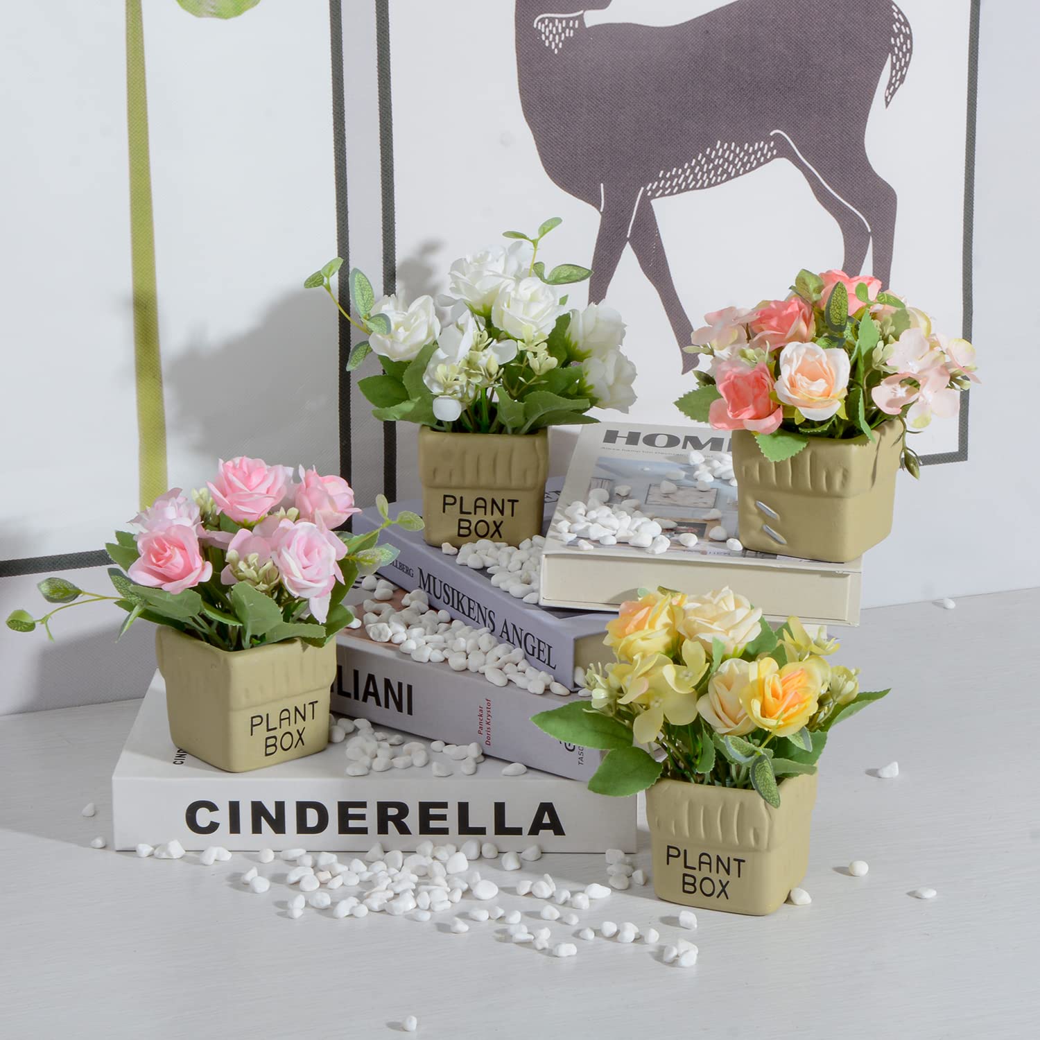 XONOR Artificial Flower Plants – Mini Fake Hydrangea Flowers in Pot for Home Decor Party Wedding Office Patio Table Desk Decoration, Set of 4, 3.3''(D) x 5.5''(H)