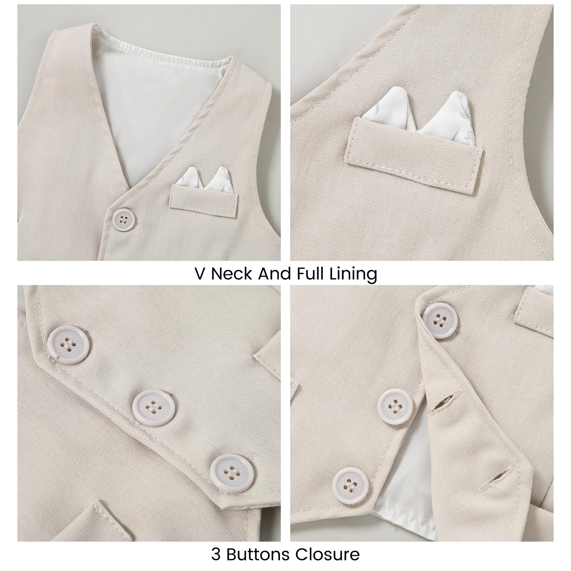 - √Occasions: This baby suit for boys vest for formal or informal occasions, such as Baptism, Wedding Banquet, Birthday, Church, Party or Daily for All seasons. Gentleman tuxedo waistcoat is also a good gift for boys, makes your baby handsome and gentlemen, enhance baby's profile.