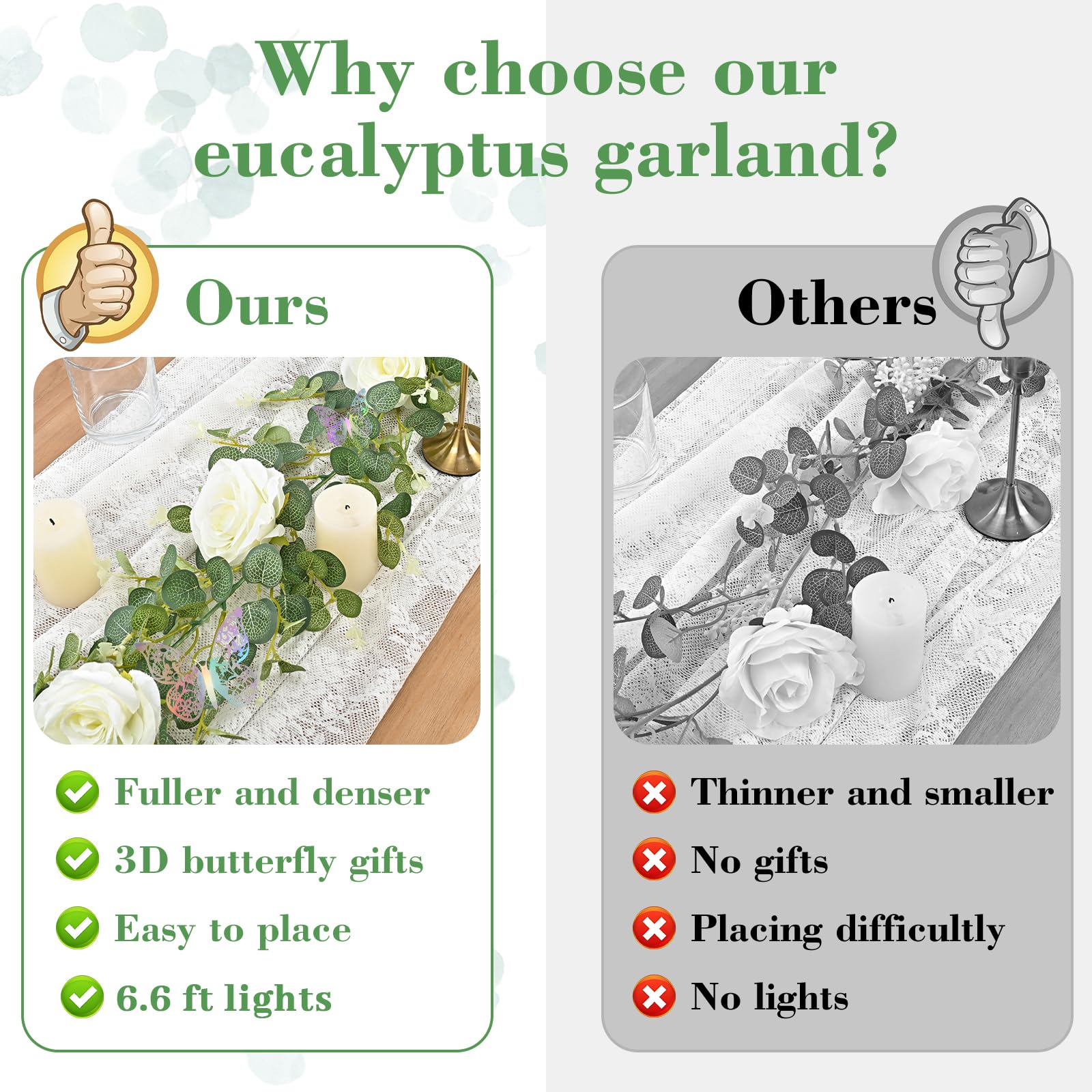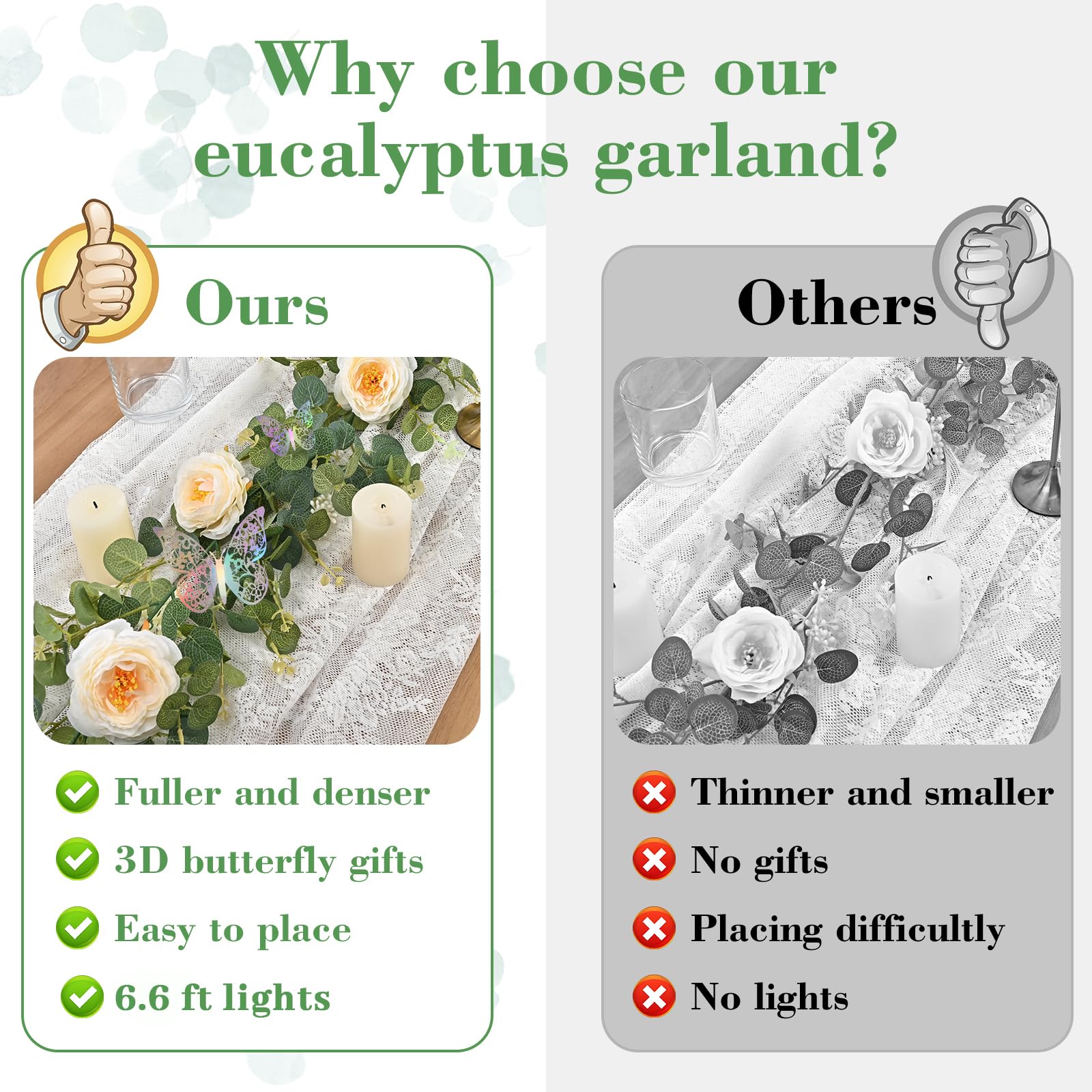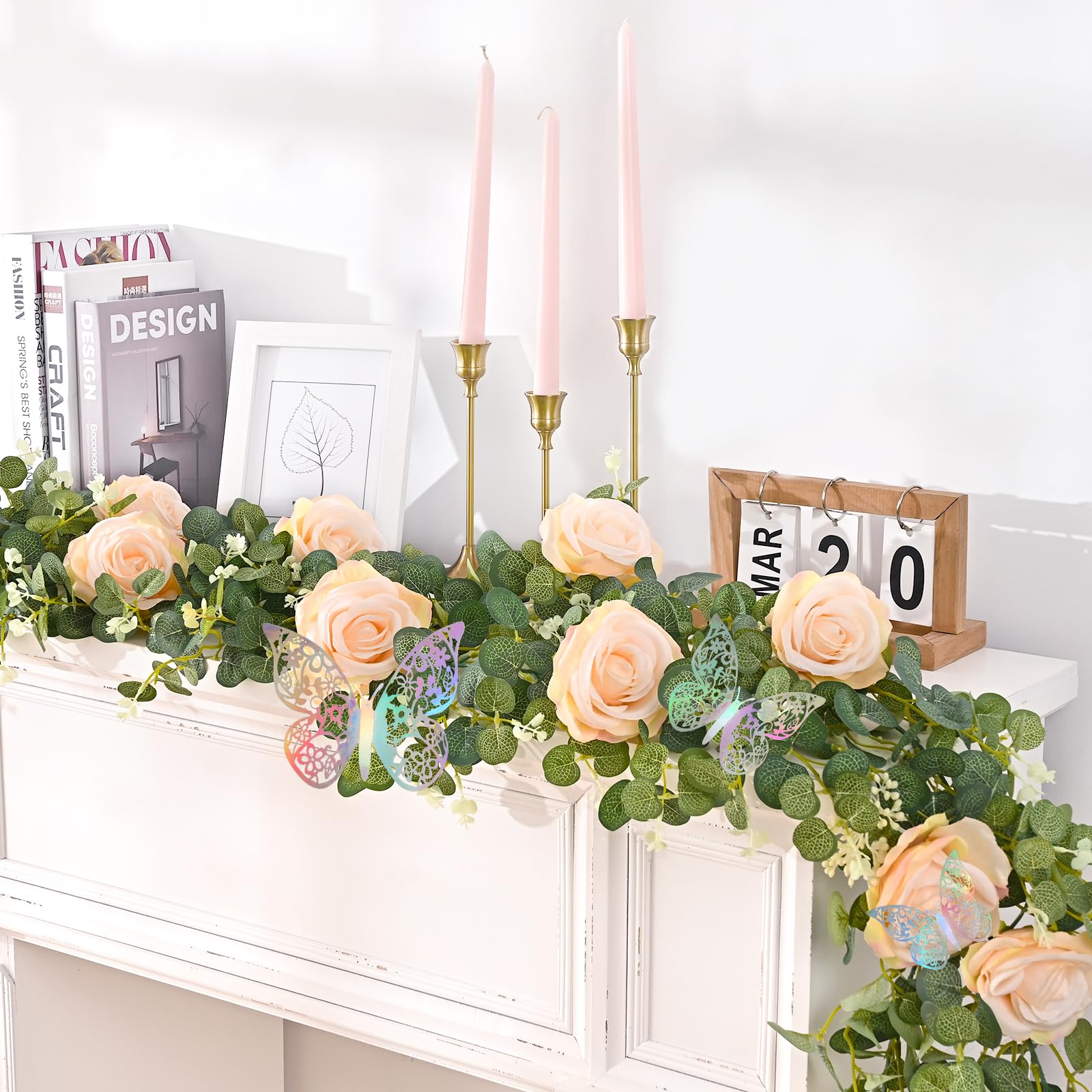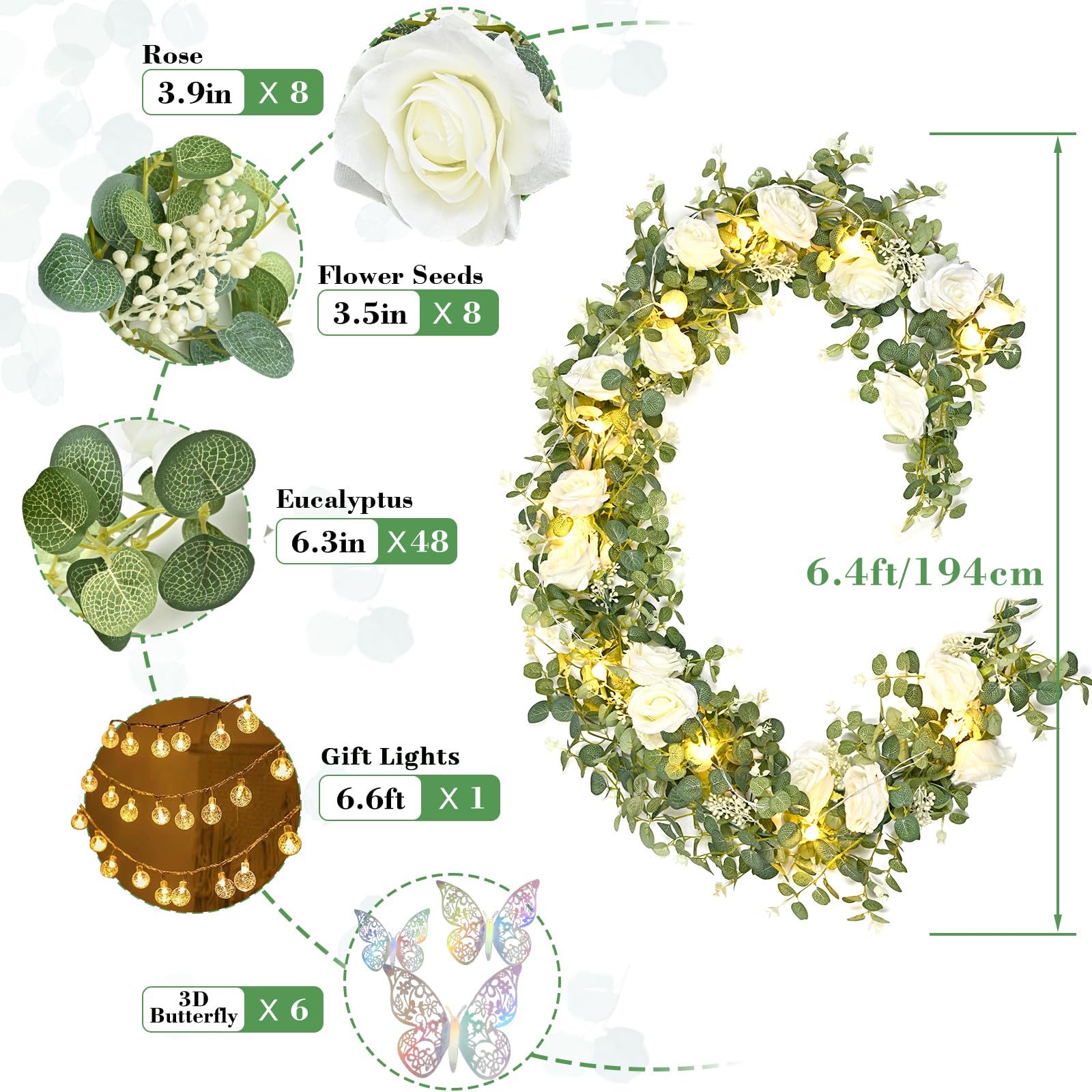 - Density Upgrade & Fuller Eucalyptus Garland: Discover the upgraded, full-bodied beauty of our 6.4 ft eucalyptus garland with champagne rose flowers - now featuring enhanced density for an even more lush and stunning visual effect. Experience an unparalleled level of quality and sophistication that will leave your guests in awe and elevate any space.