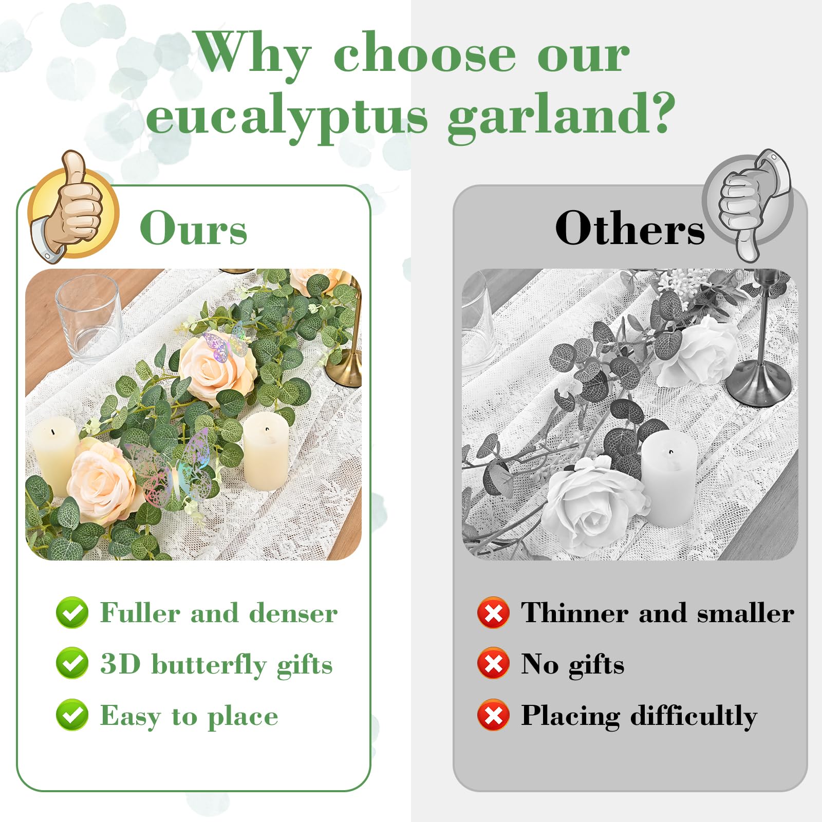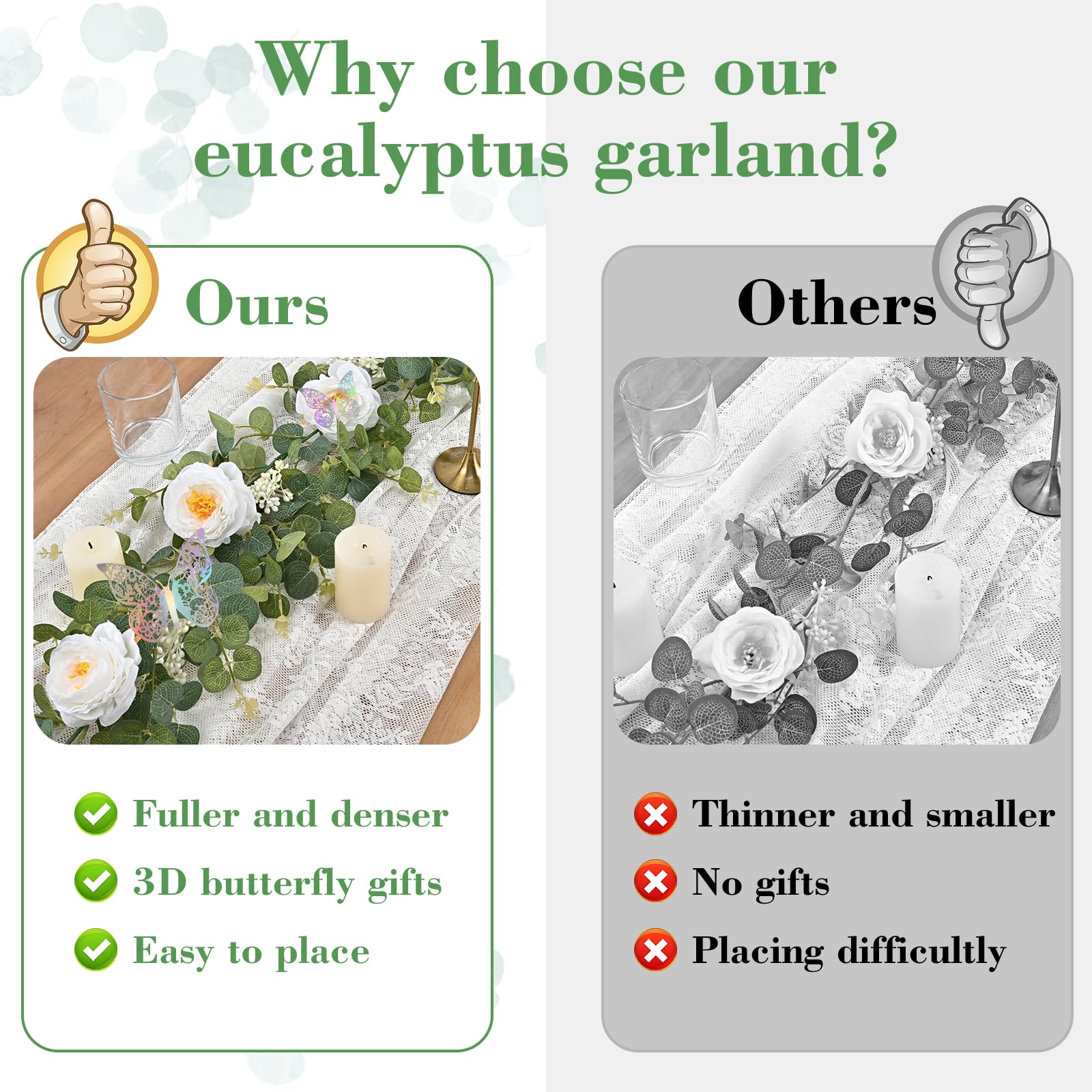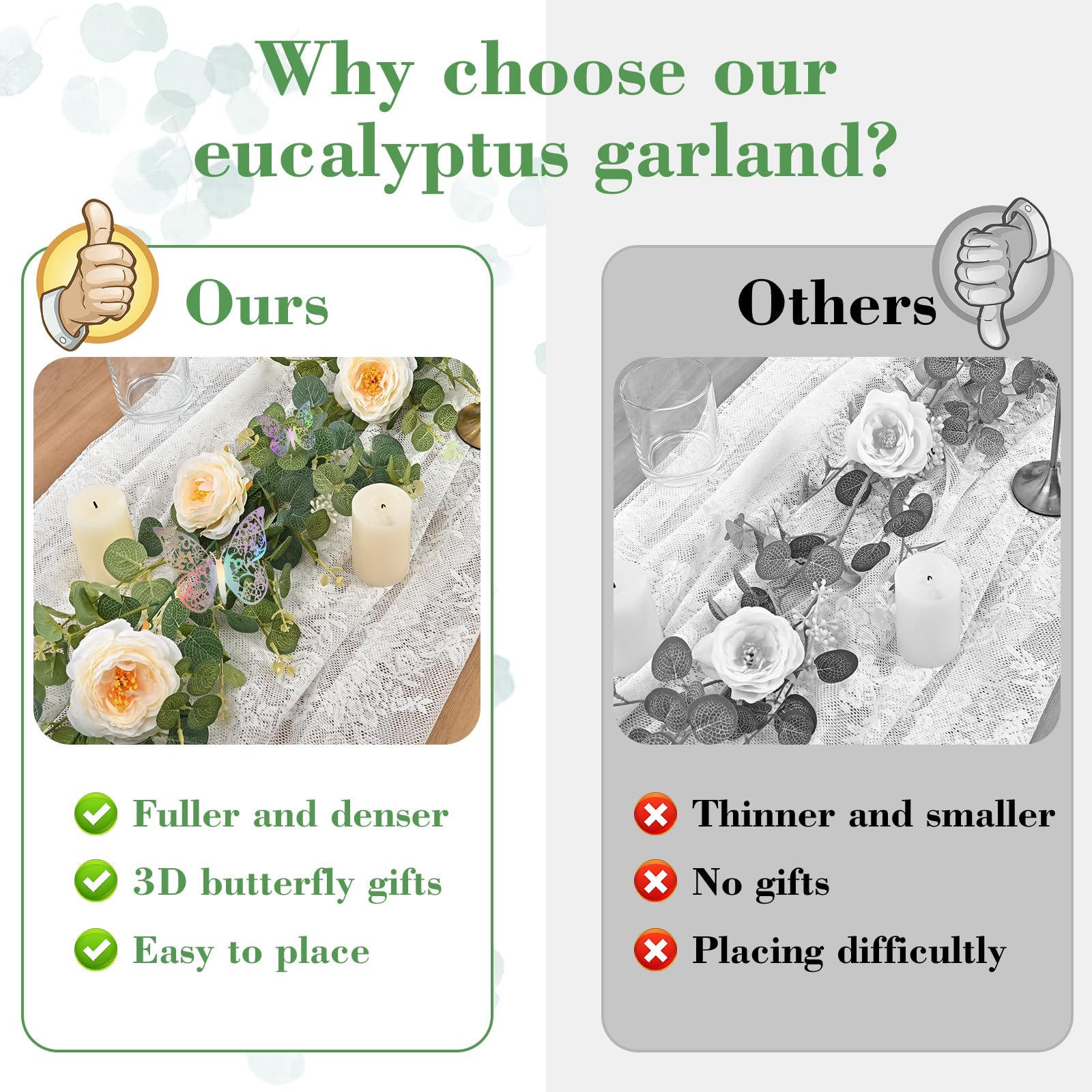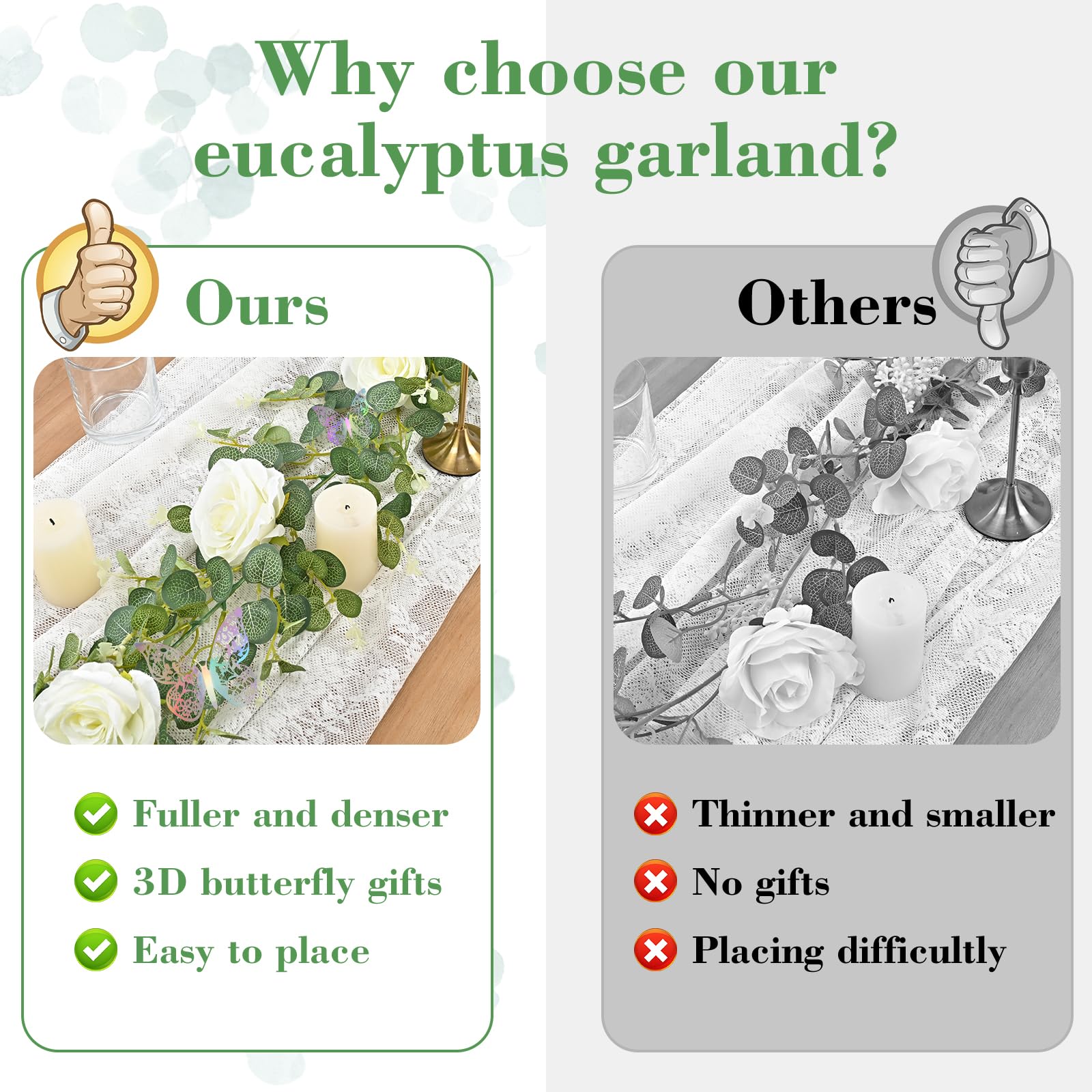 - Ideal Wedding & Table Decoration: Transform your nuptial celebration into a dreamy, enchanting setting with our premium quality faux eucalyptus garland. Add a sophisticated, timeless charm to any celebration or dining experience with this lifelike, premium vine, such as outdoor, DIY, rooms, baby shower, bridal shower.