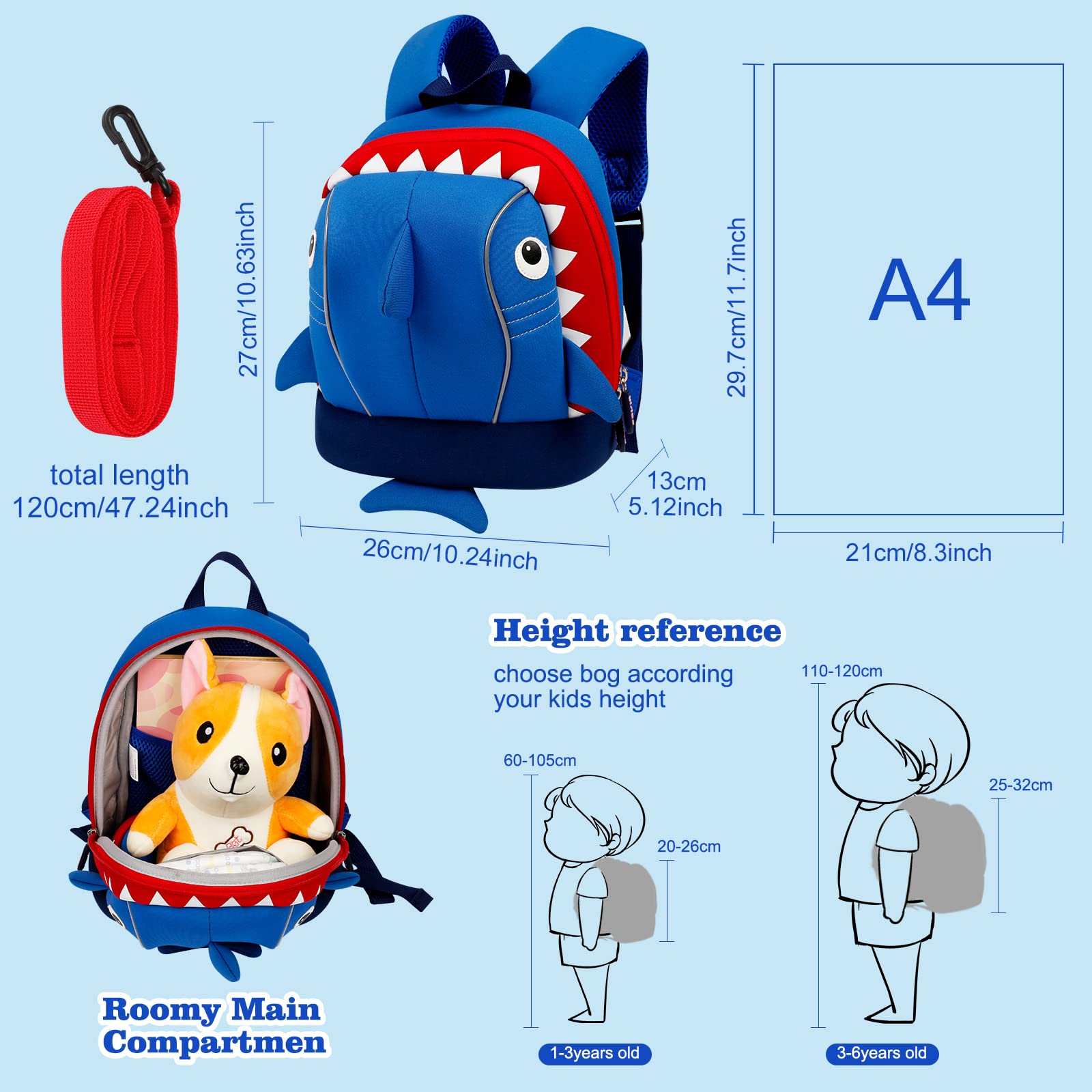 - 【Lightweight Neoprene】The zipper of the toddler backpack leash pulls are rubber coated so little hands can get a good grip.With ergonomic design,padded straps,ease the press from shouder.The padded straps are shock absorbing and improve comfort.