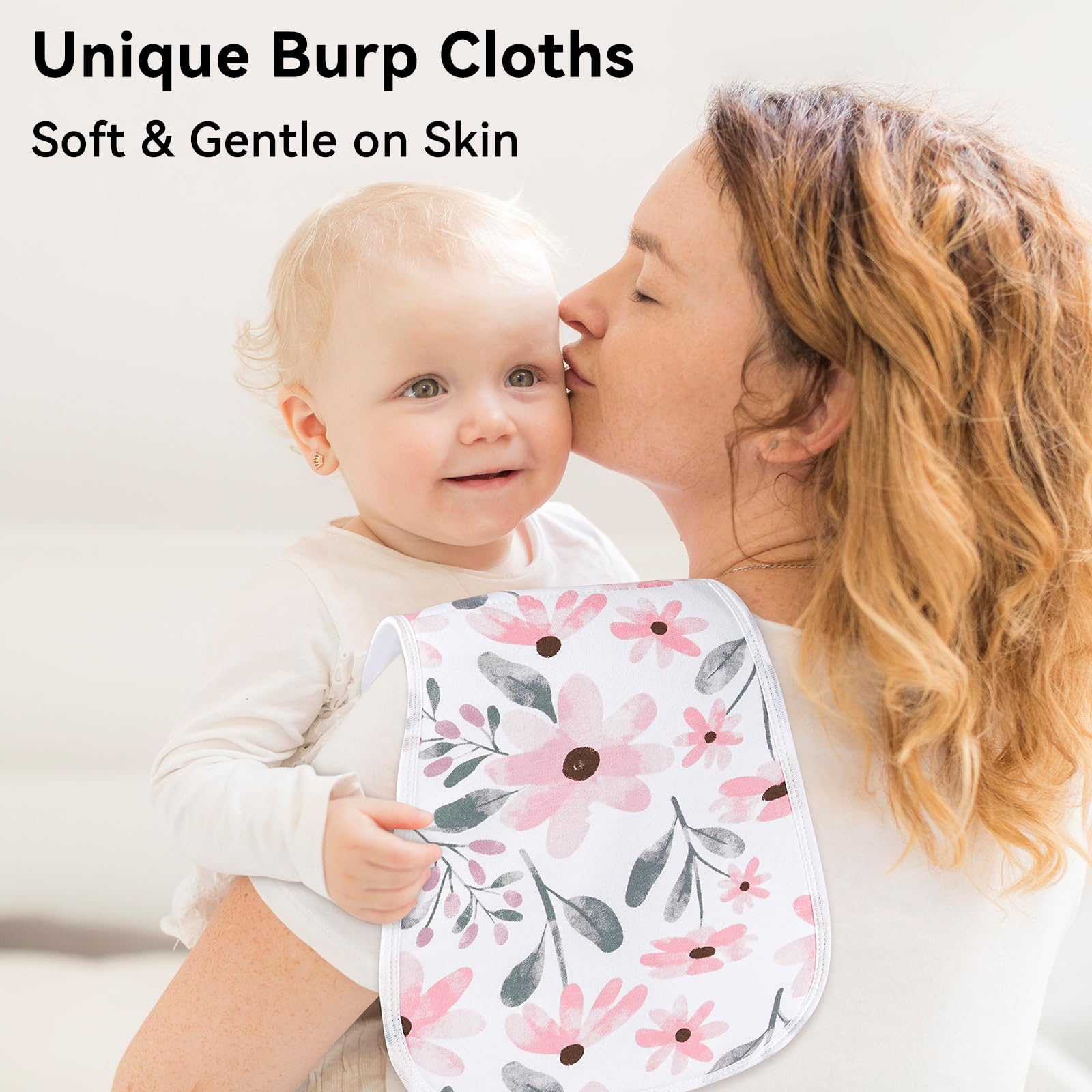 Yoofoss Baby Burp Cloths 5 Pack Burping Cloths for Babies Boys Girls Large 21''X10'' Extra Soft and Absorbent Flowers