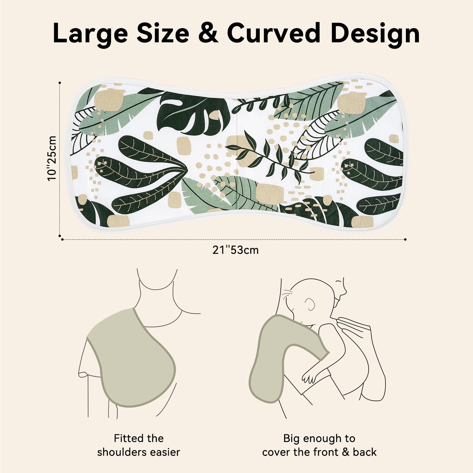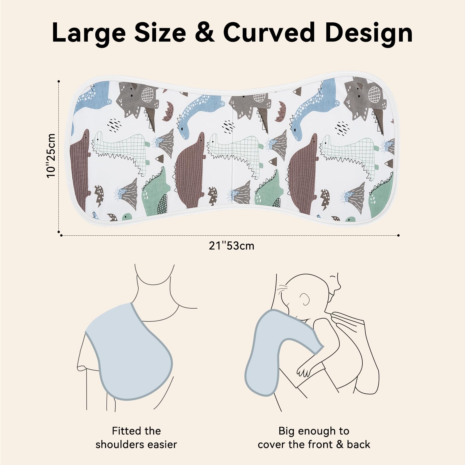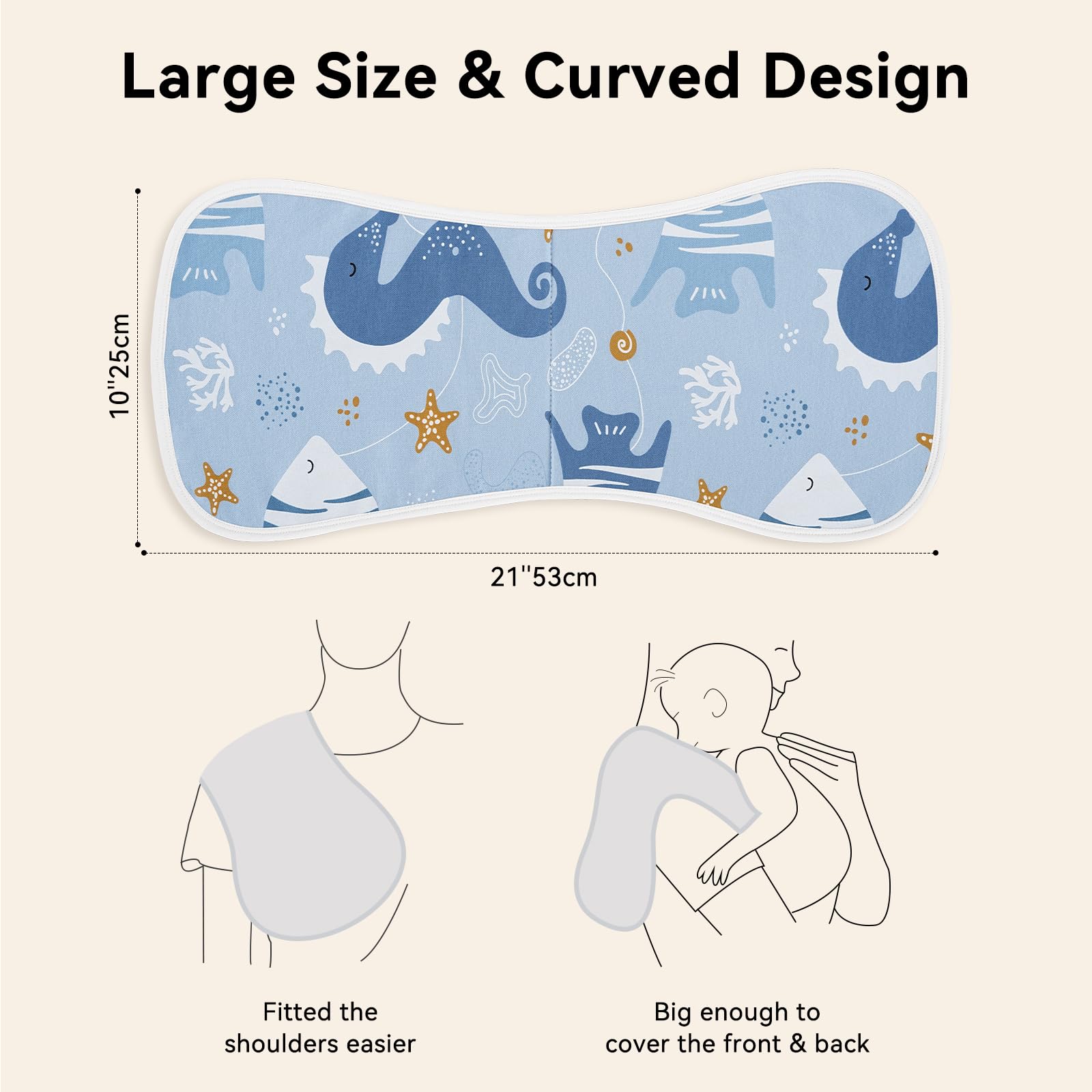 - Unique Figure-8 Design: Measured 21x10 inches, large burp cloths with 8-shaped design snugly fits parents' shoulders, not only preventing the burp cloth from slipping, but also effectively protect baby and parents' clothes.