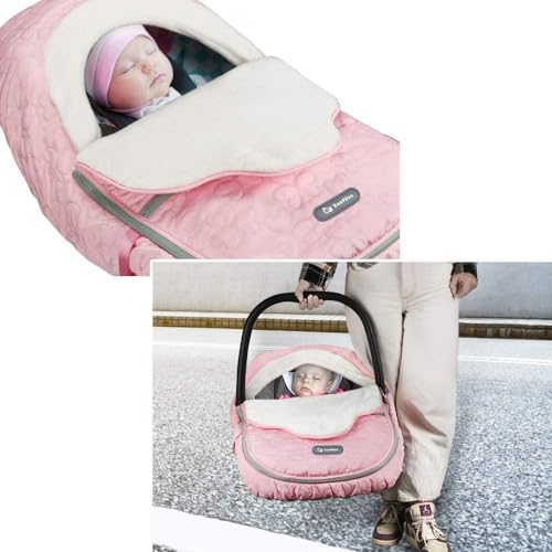 Yoofoss Baby Car Seat Cover Winter Carseat Canopies Cover to Protect Baby from Cold Wind, Super Warm Plush Fleece Baby Carrier Cover for Infant Boys Girls (Pink)