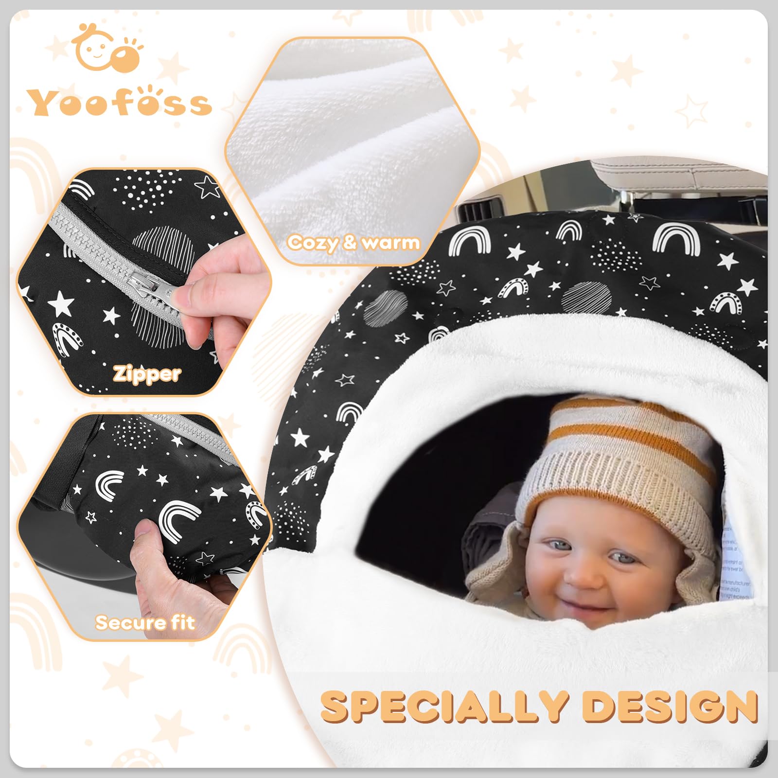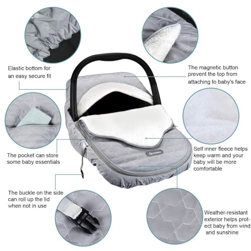 - Safe and Universal Fit : The winter car seat cover for babies features with elastic bands at the bottom, it fits car seat carrier and standard stroller well, protect your baby from the elements and chilly weather. It doesn't interfere with the proper harnessing of the child or the functionality of the car seat's safety features.