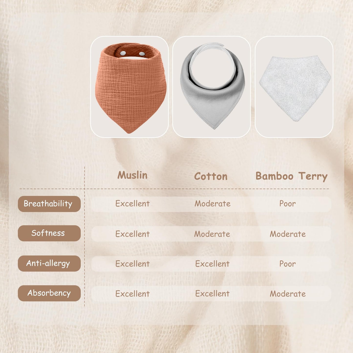 - Soft and Breathable: Our baby bibs are made of 100% muslin cotton, which is softer and more breathable than normal cotton fabric. Your baby's neck will not be stuffy in the hot summer.