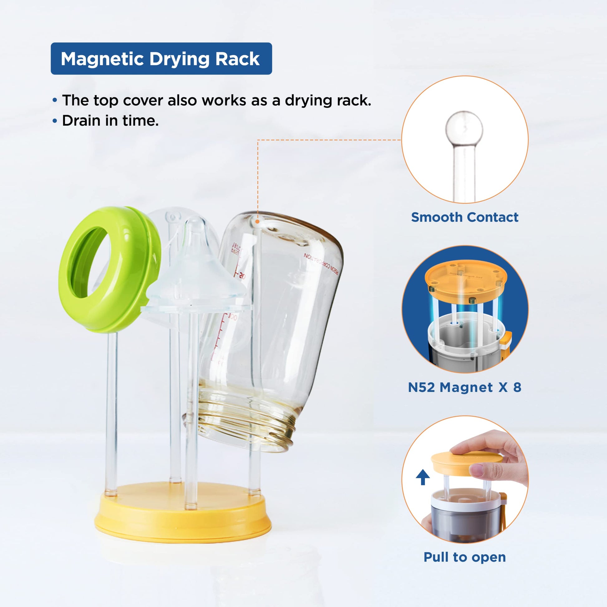 - ✈【Built-in Drying Rack and Baby Bottle Soap Dispenser】This baby travel essential set has a drying rack built in. The magnetic top cover also works as a bottle drying rack which has four branches to hold baby bottles for air drying. The set also has a 1.7oz baby bottle soap dispenser for your own safe bottle soap. Each brush has an exclusive storage location in the container case to avoid clutter.