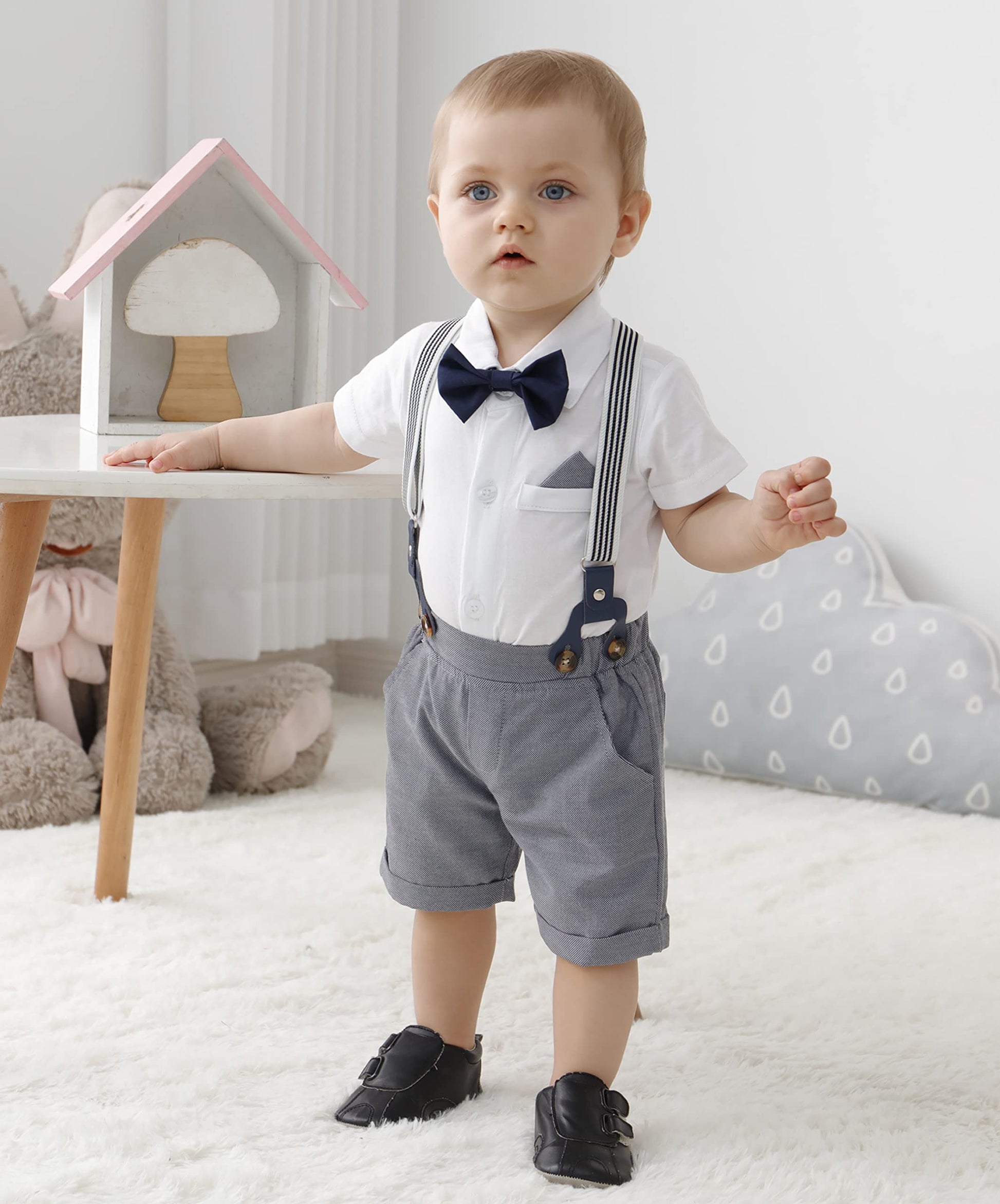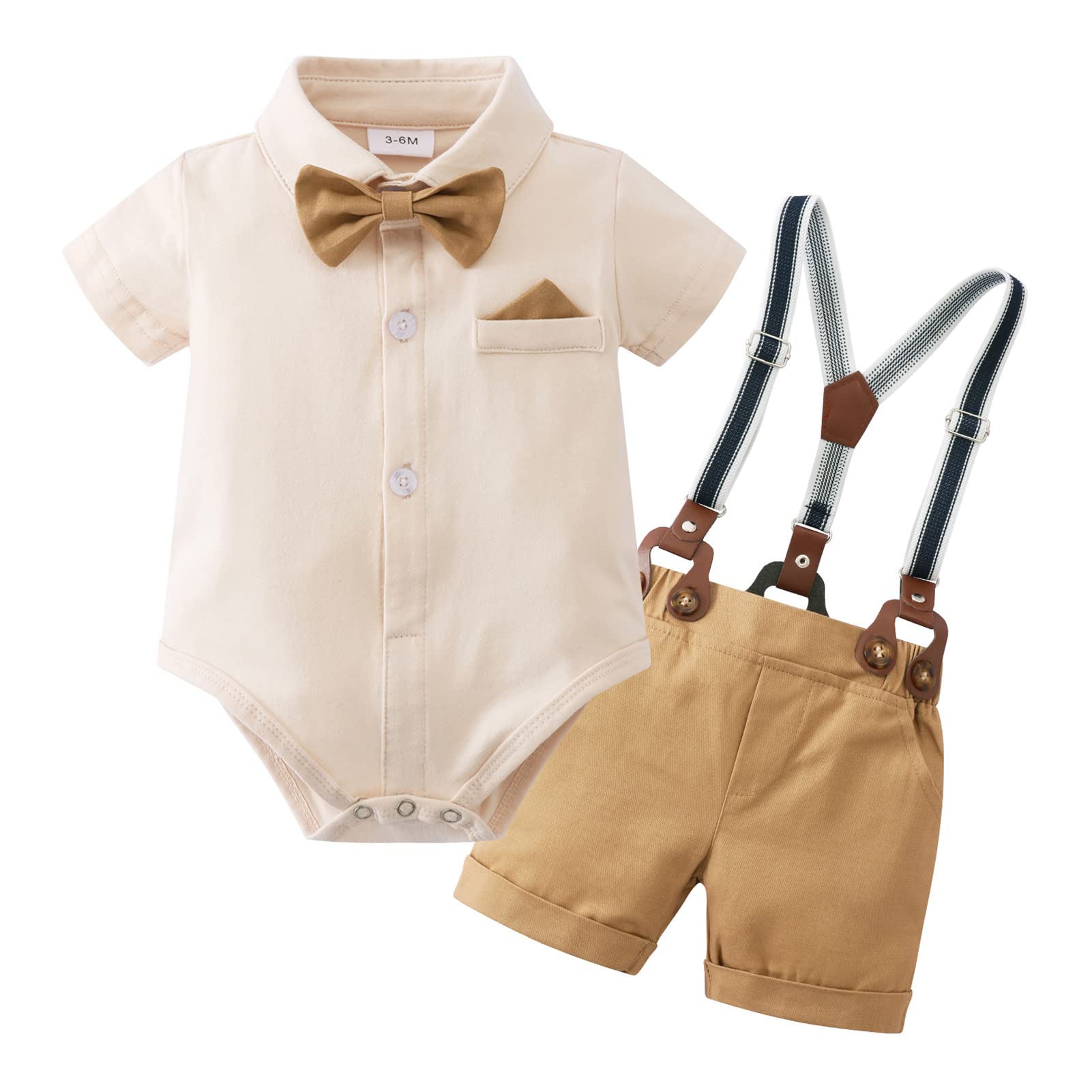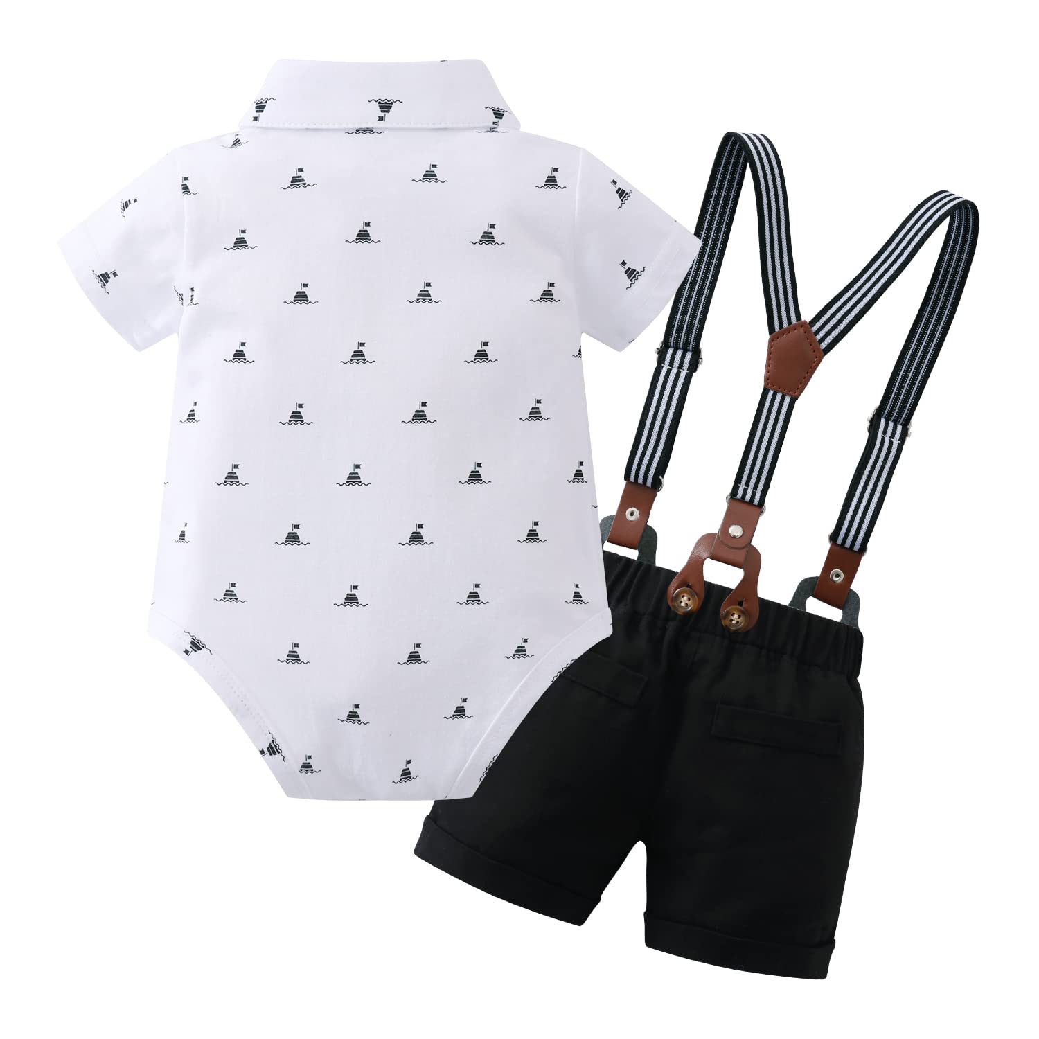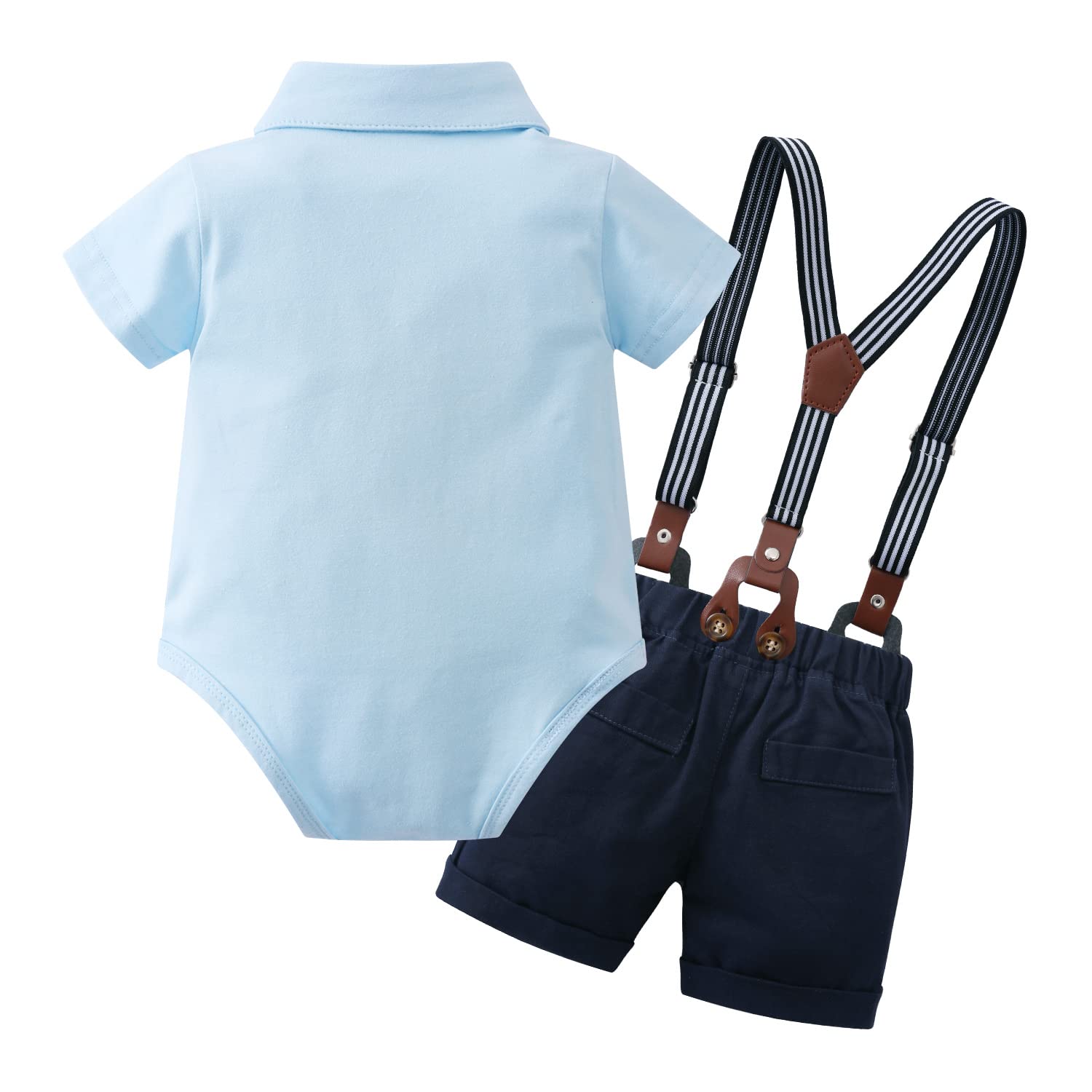 YUEMION Infant Baby Boy Clothes Gentleman Outfits Suits Summer Short Sleeve Bowtie Bodysuit Shirts + Suspender Shorts(0-24M)
