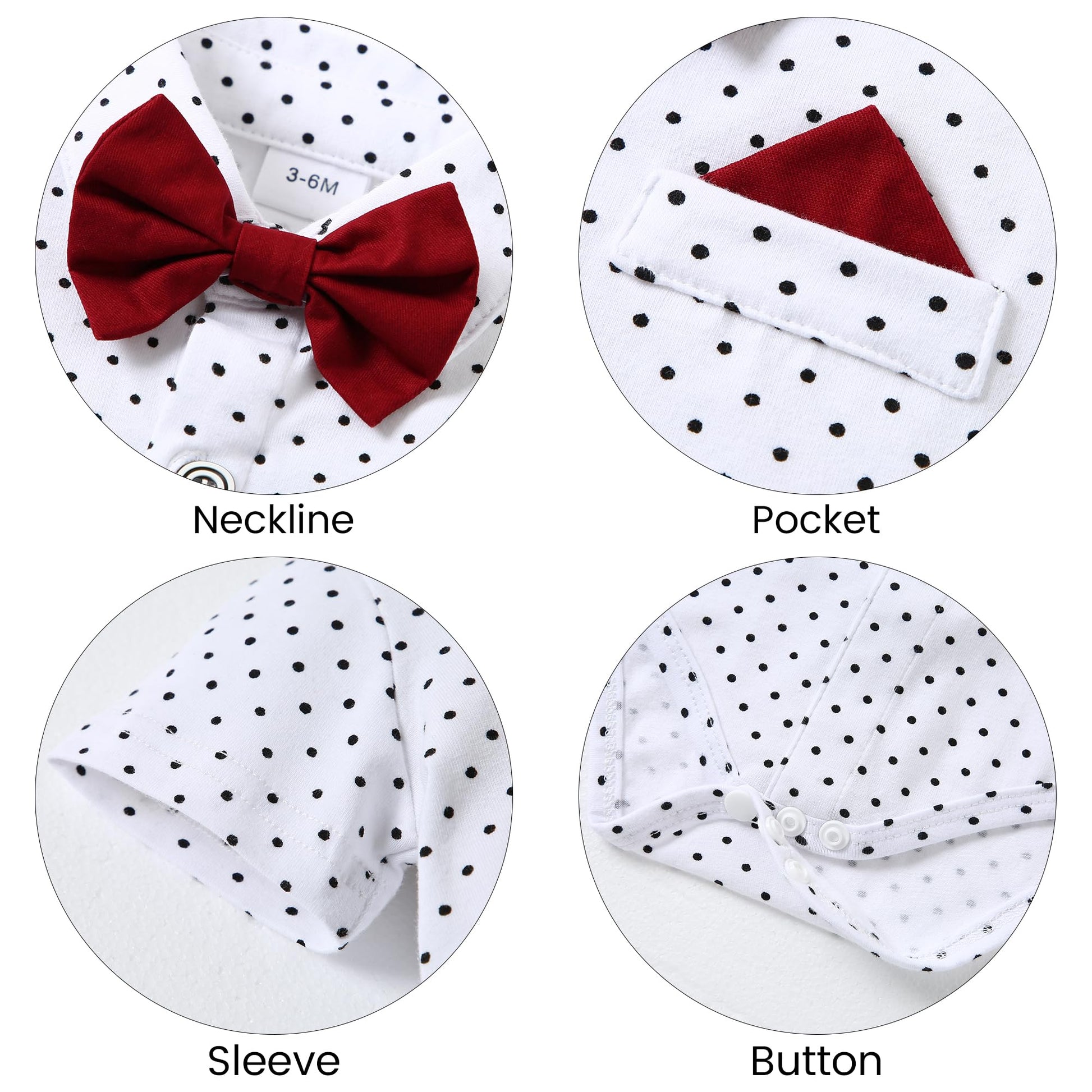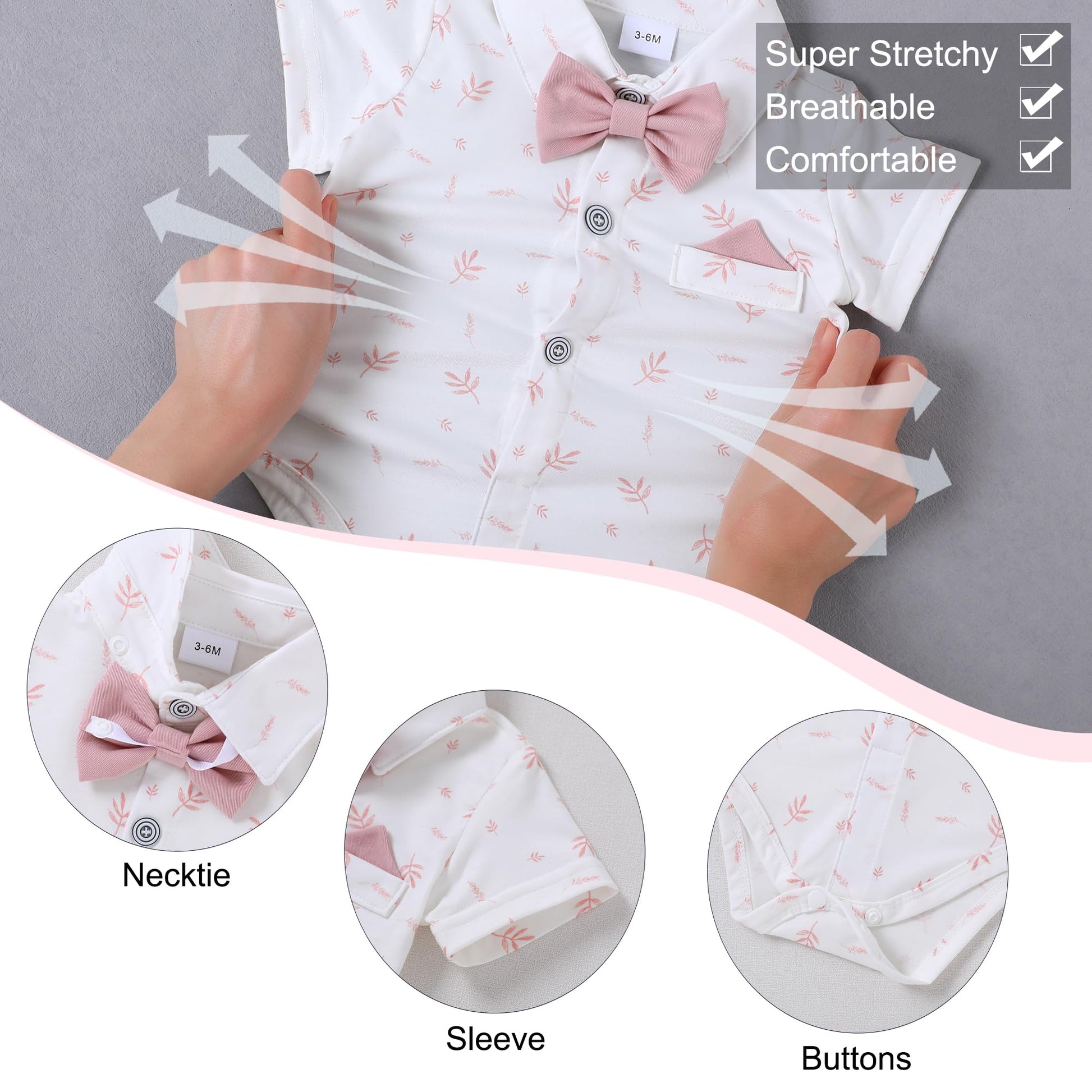 - 【More convenient】: The toddler boy clothes short sleeve romper shirt has buttons in the crotch, snap on closure, convenient for wear and diaper changing.