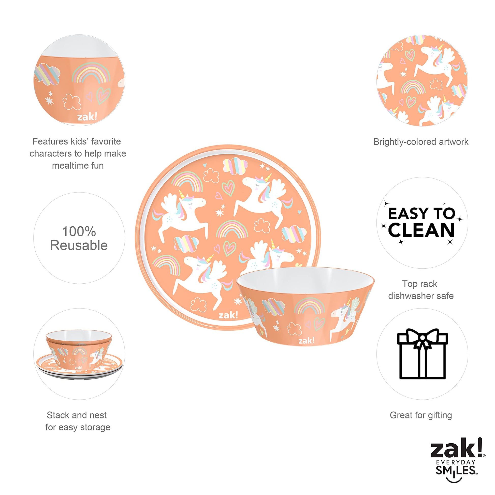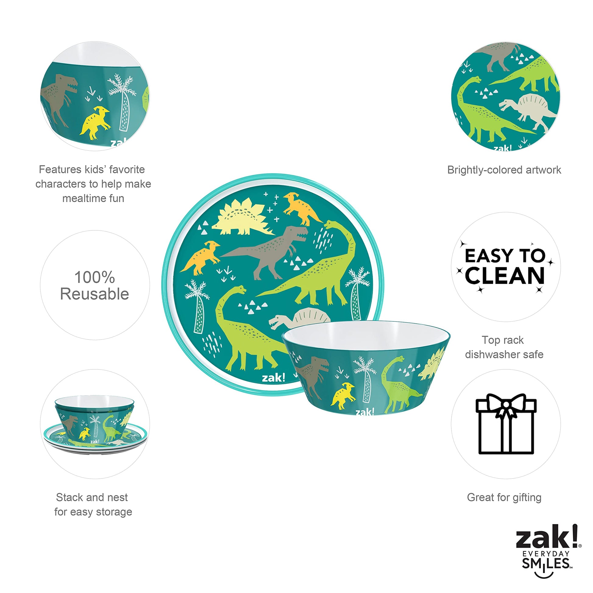 - EVERYDAY SMILES - Whether it’s a dinnerware set featuring a child’s favorite animated character or a water bottle that invokes nostalgia for a forgotten TV show, zak! brings everyday smiles to as many people as possible, in as many ways as possible.