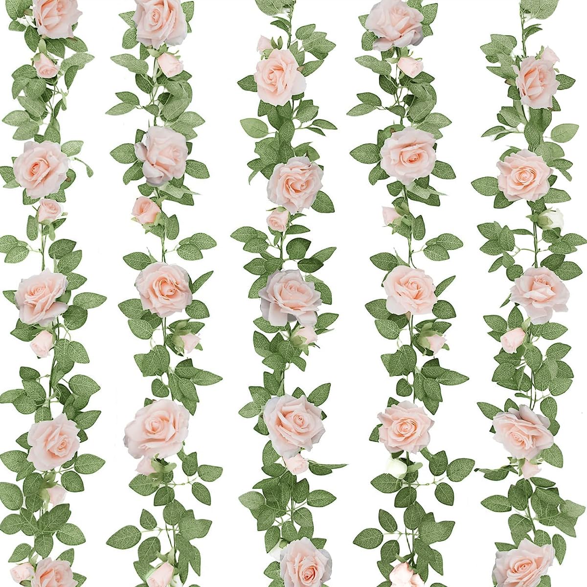 - [Package]: The package includes 5pcs artificial pink rose vines. Each garland with 4 rose flowers and 4 rose buds.