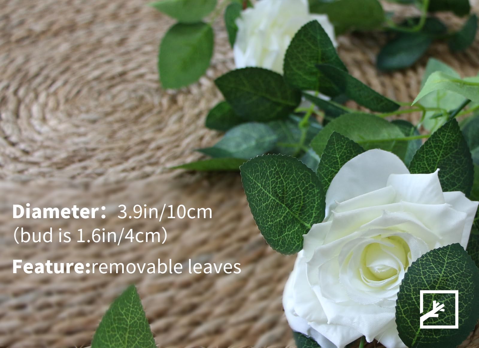 - [Size]: The length of the flower garland is about 6.5ft/2m. The diameter of each rose flower is 3.9"/10cm.