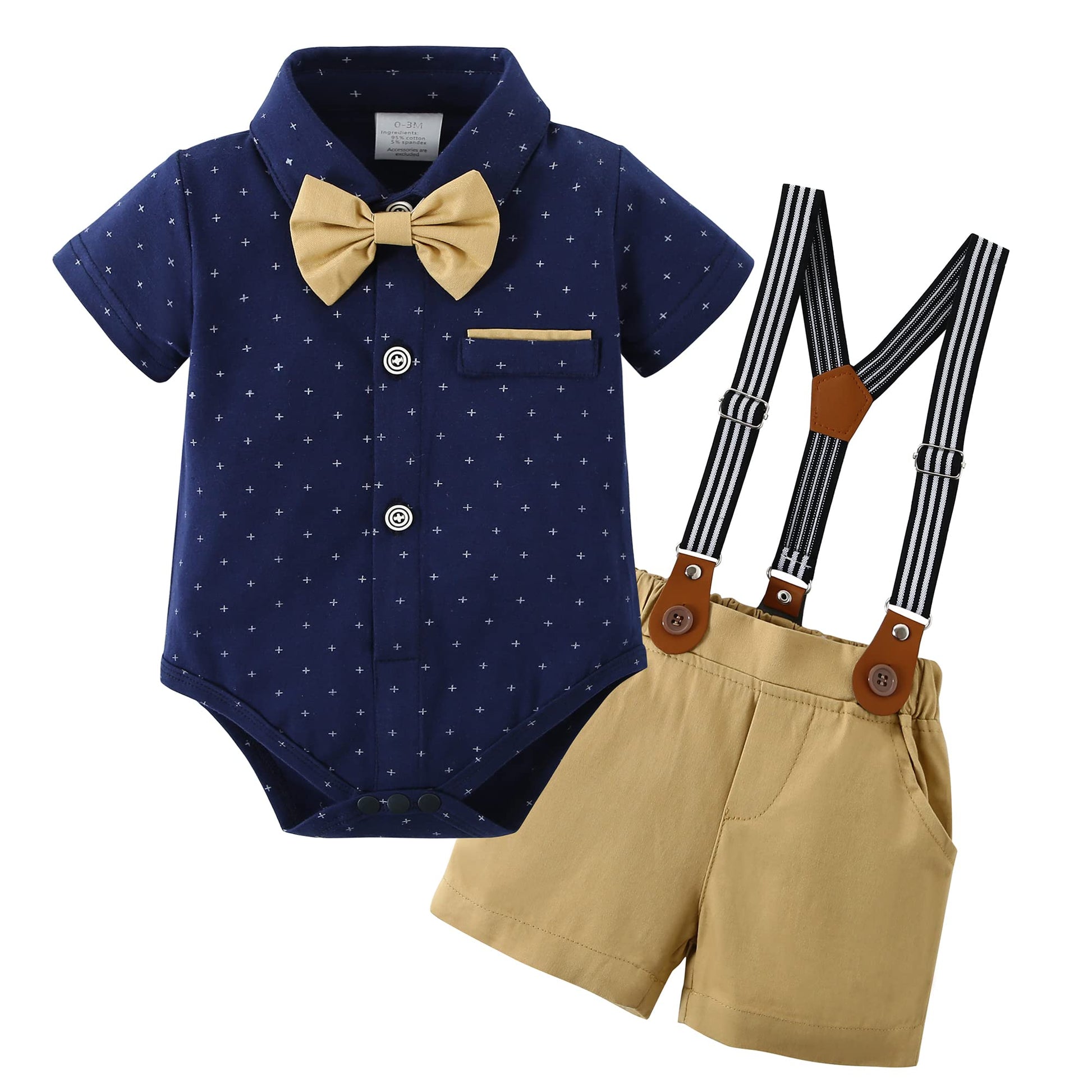 ZOEREA Baby Boy Clothes Suit Infant Short Sleeve Gentleman Outfits Dress Shirt+Bowtie+Suspender Shorts 0-18M