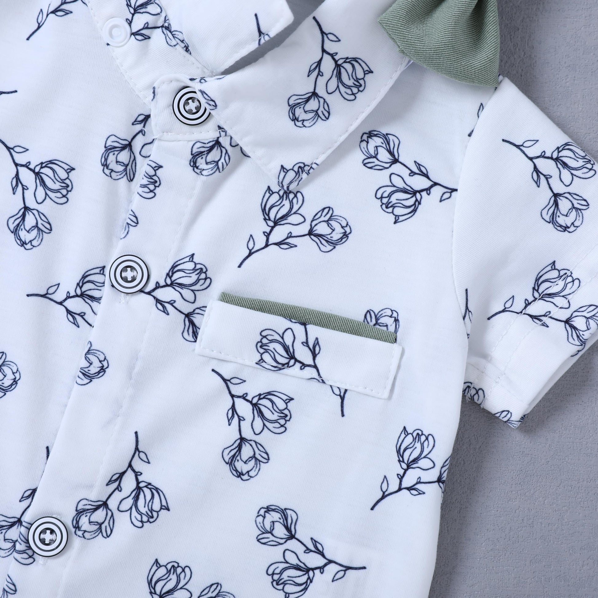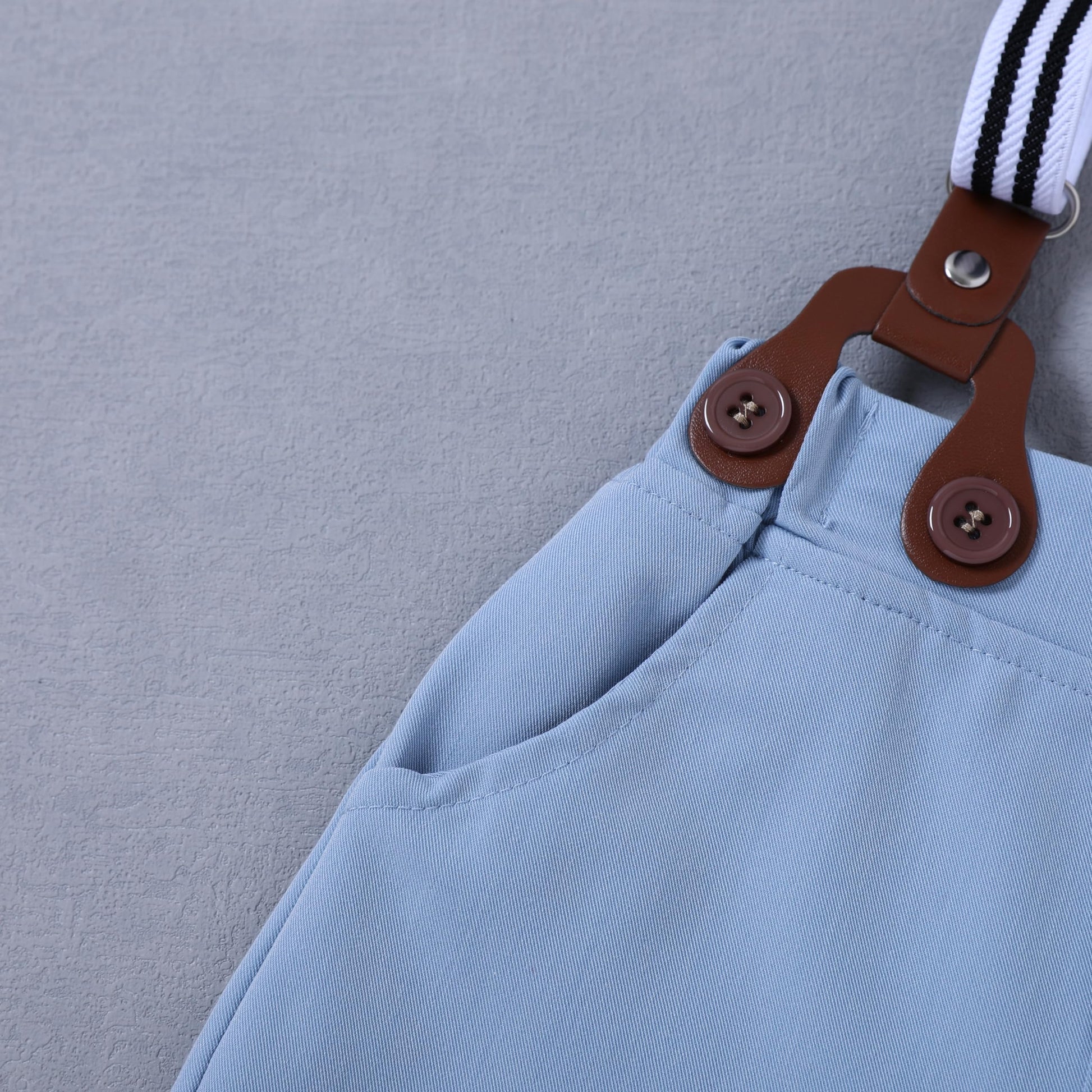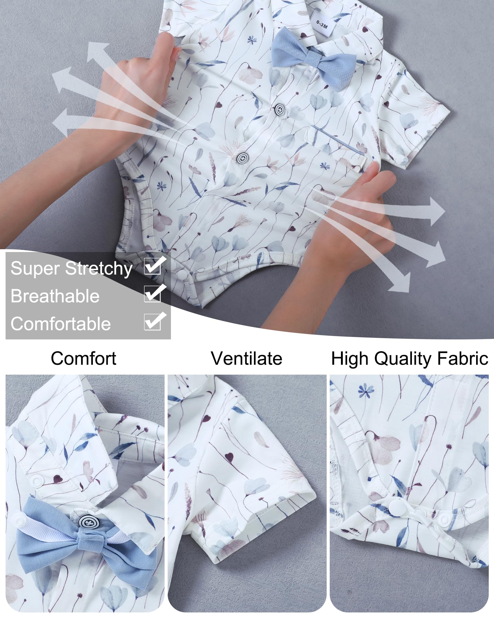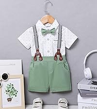 - Package include: 1pc short sleeve romper + 1pc bowtie + 1pc Suspender Short Pants