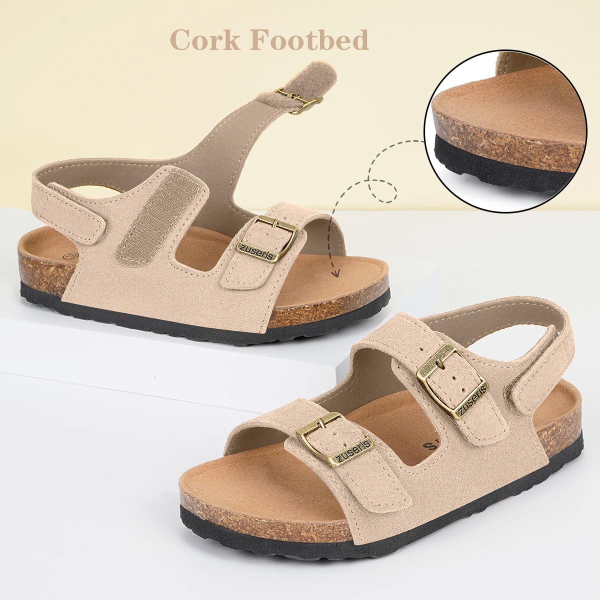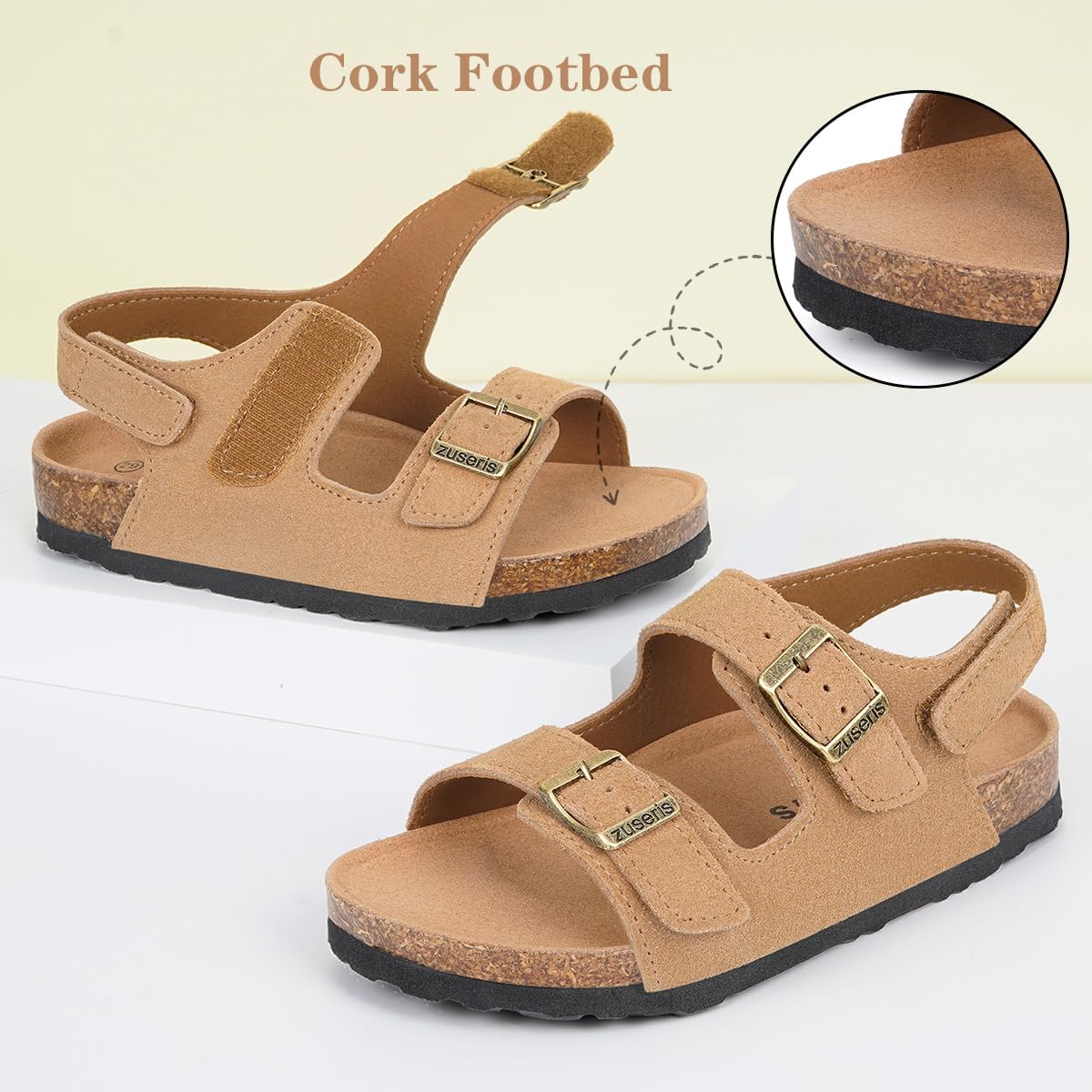ZUSERIS Kids Toddler Sandals Boys Girls Cork Footbed Sandal Comfort Double Bu...
