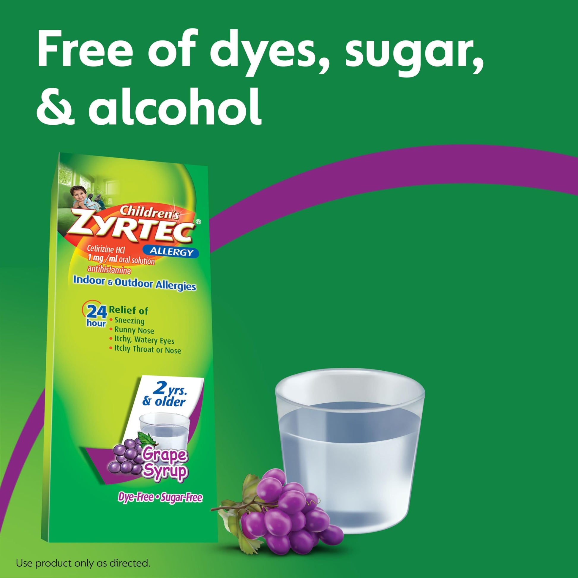 - From Zyrtec, the #1 pediatrician-recommended brand for children's allergies among OTC oral antihistamines, this children's allergy medicine syrup is available in a kid friendly grape flavor & is both dye-free & sugar-free